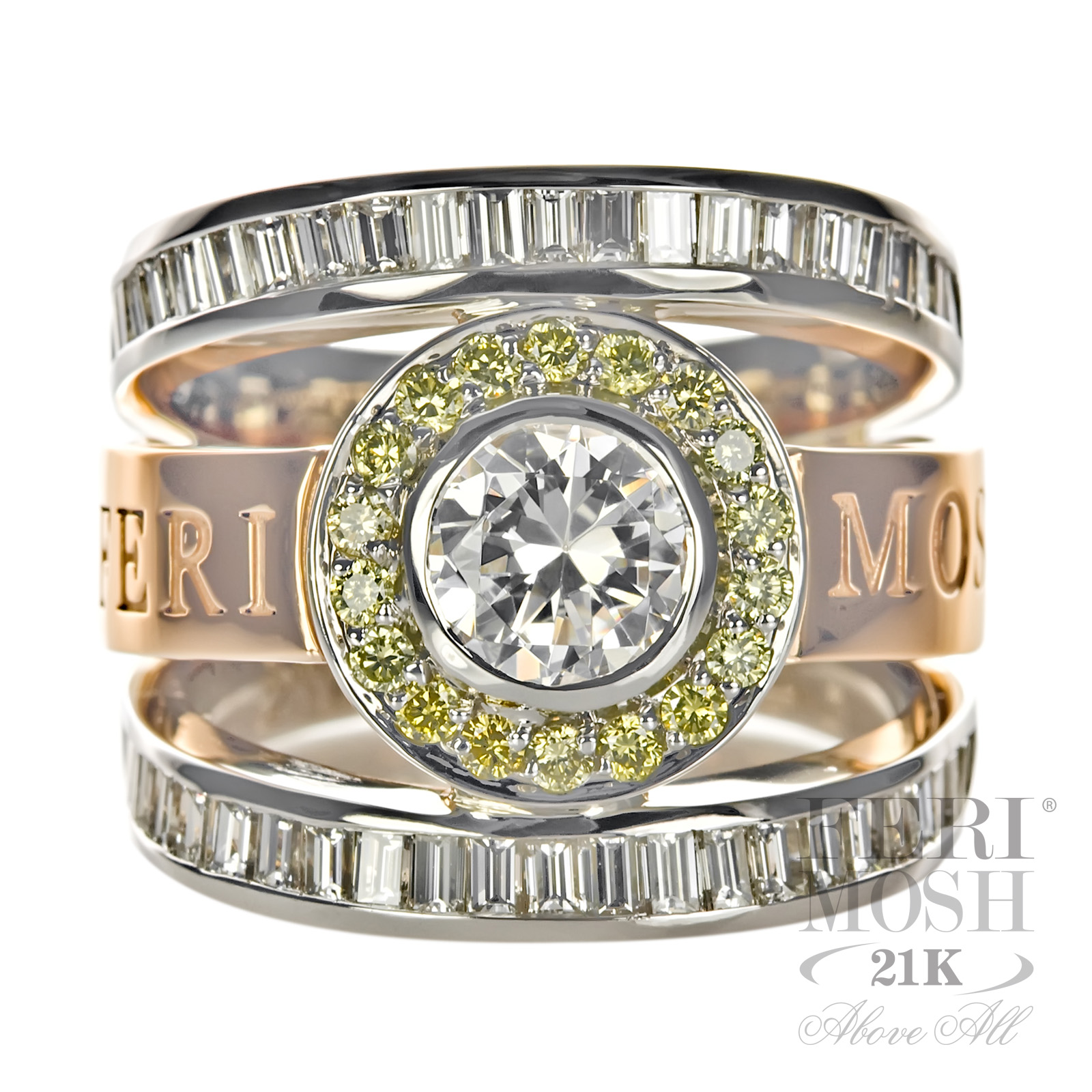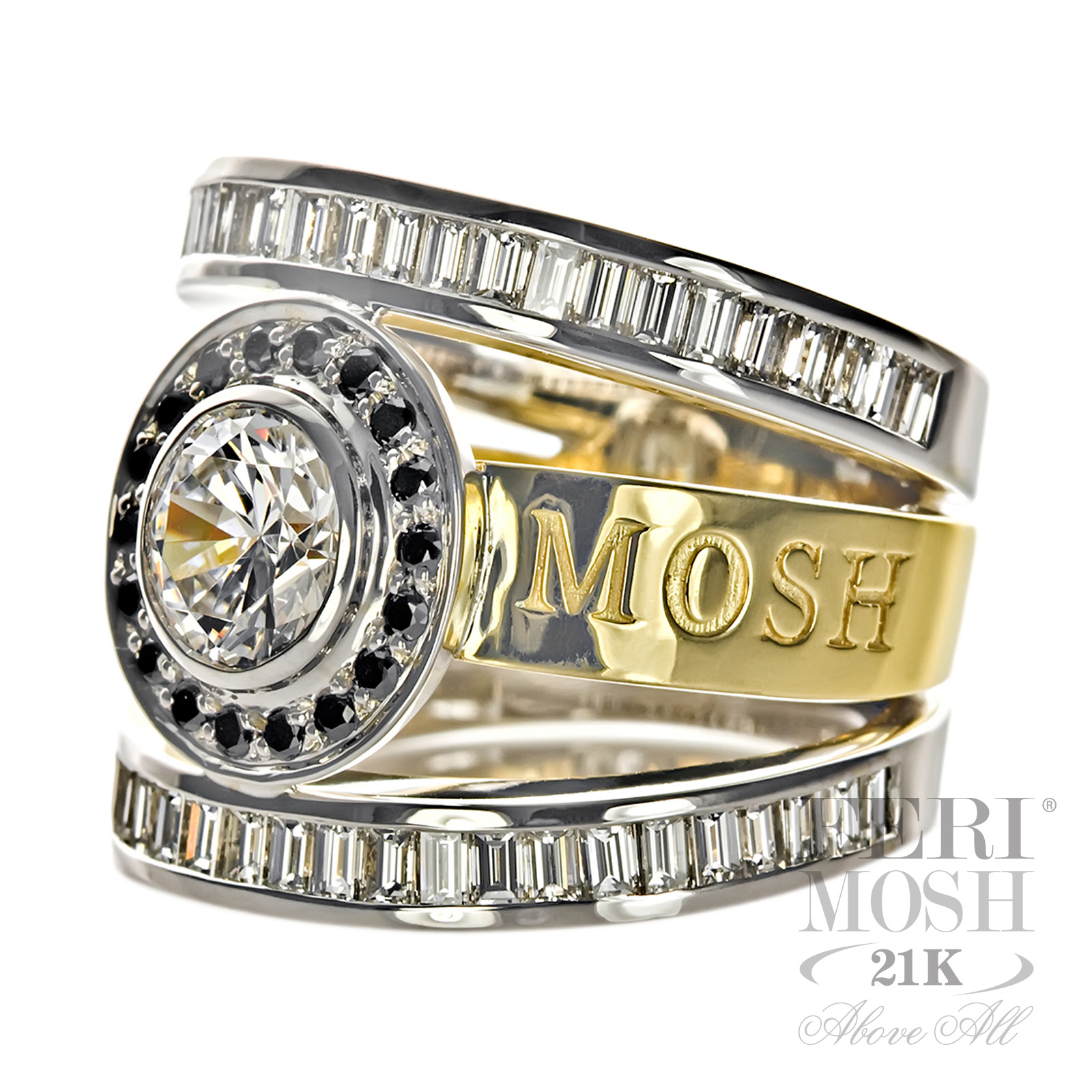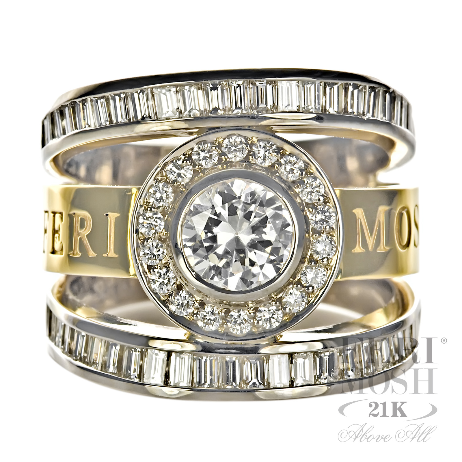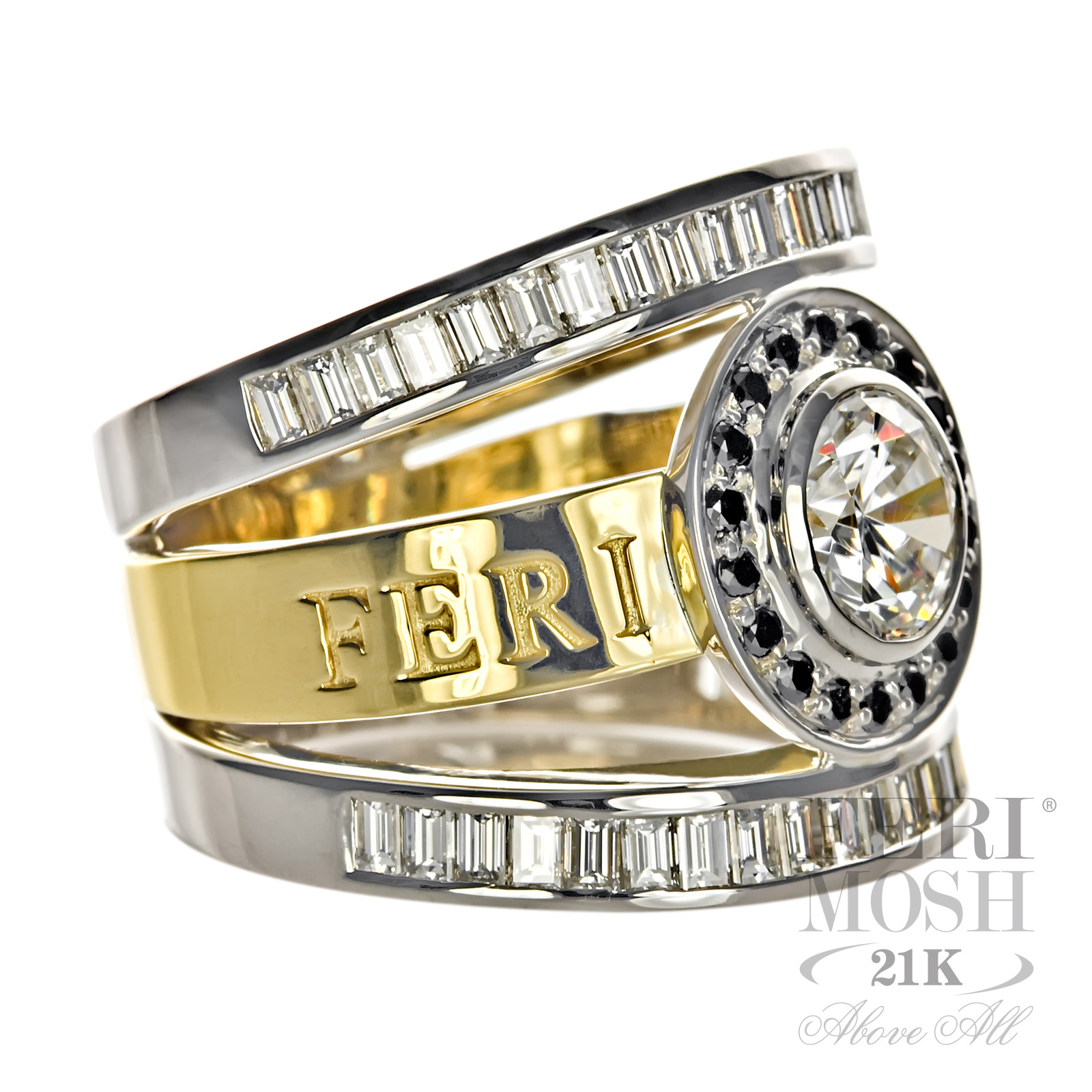 - FERI MOSH embedded in large letters within the casting in 21K yellow or rose gold