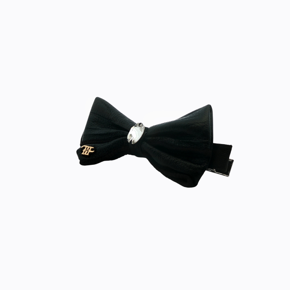 -This charming hair clip is crafted from luxurious black satin fabric, offering a rich and elegant look for any occasion