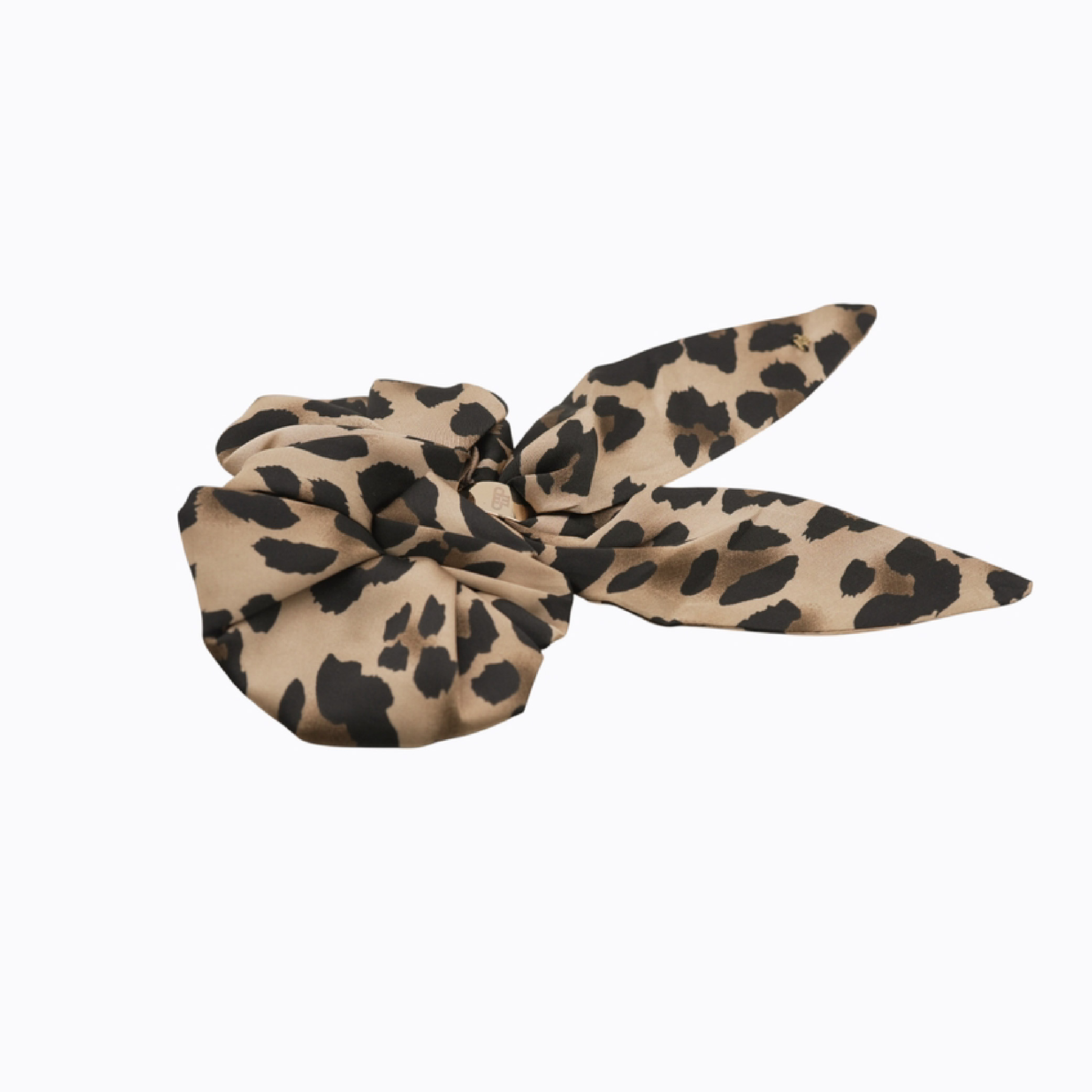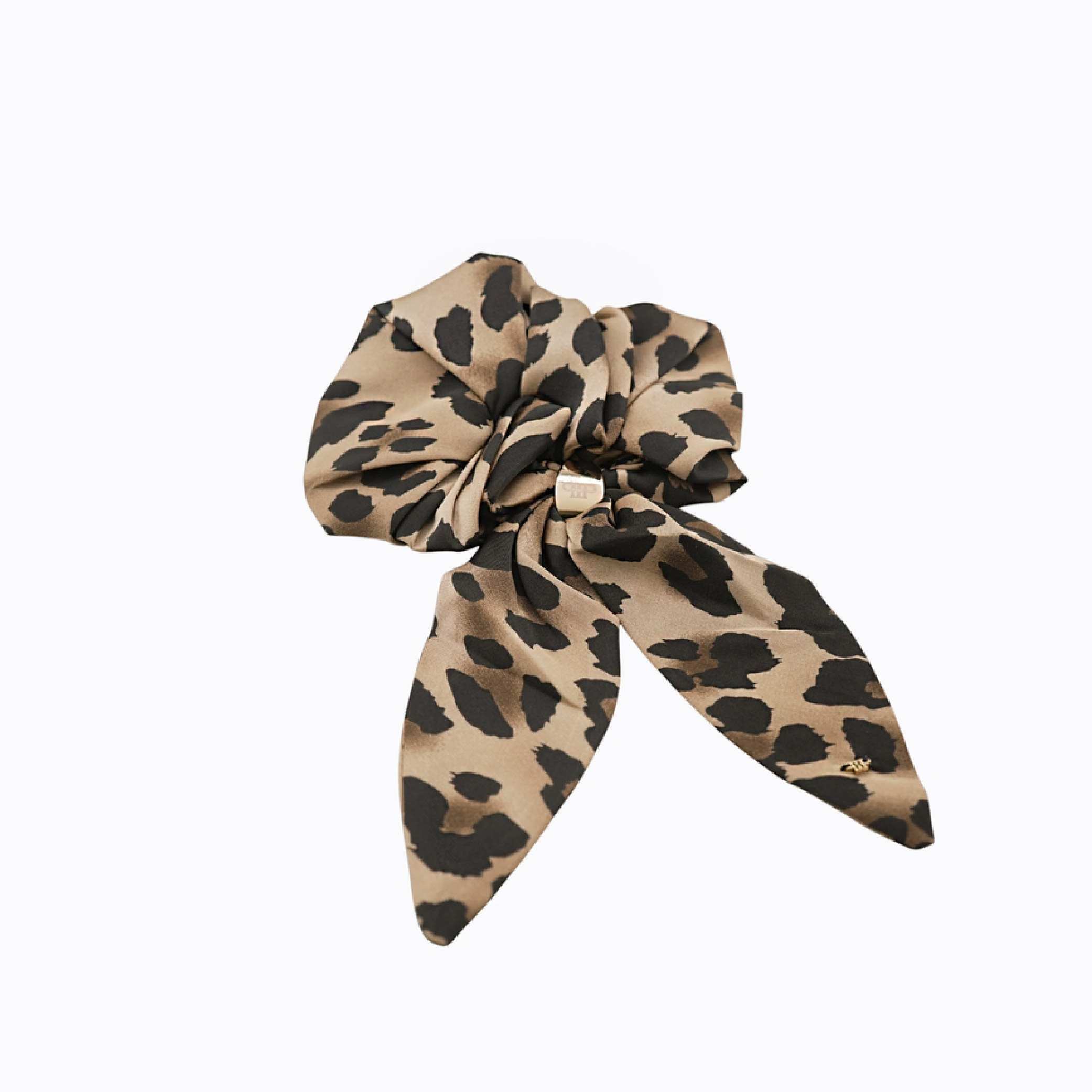 - This fashionable hair tie features a chic cheetah print design, showcasing a warm beige background with striking black spots