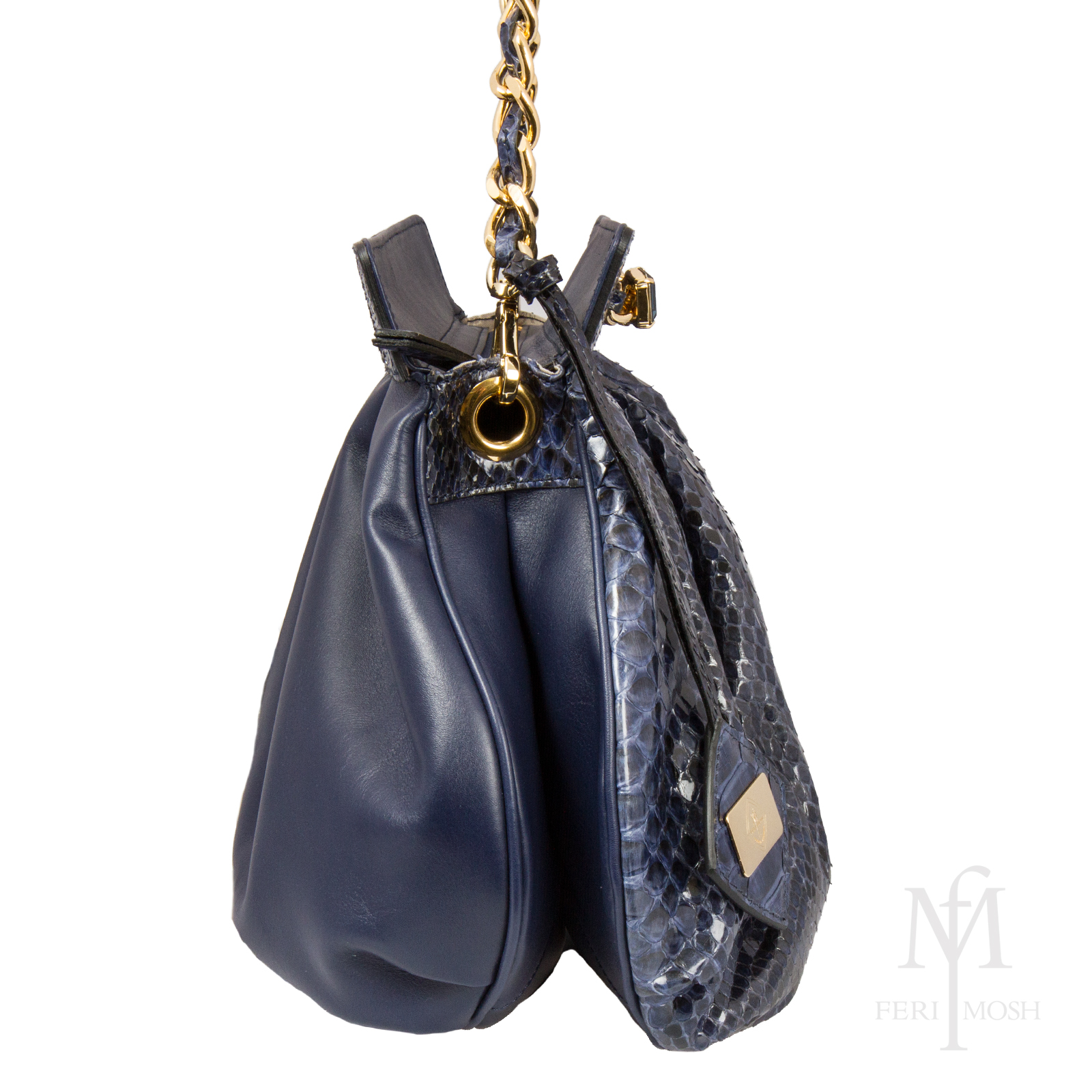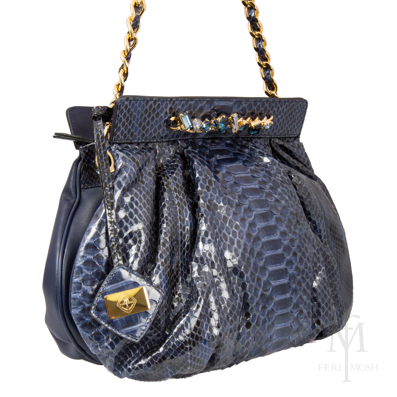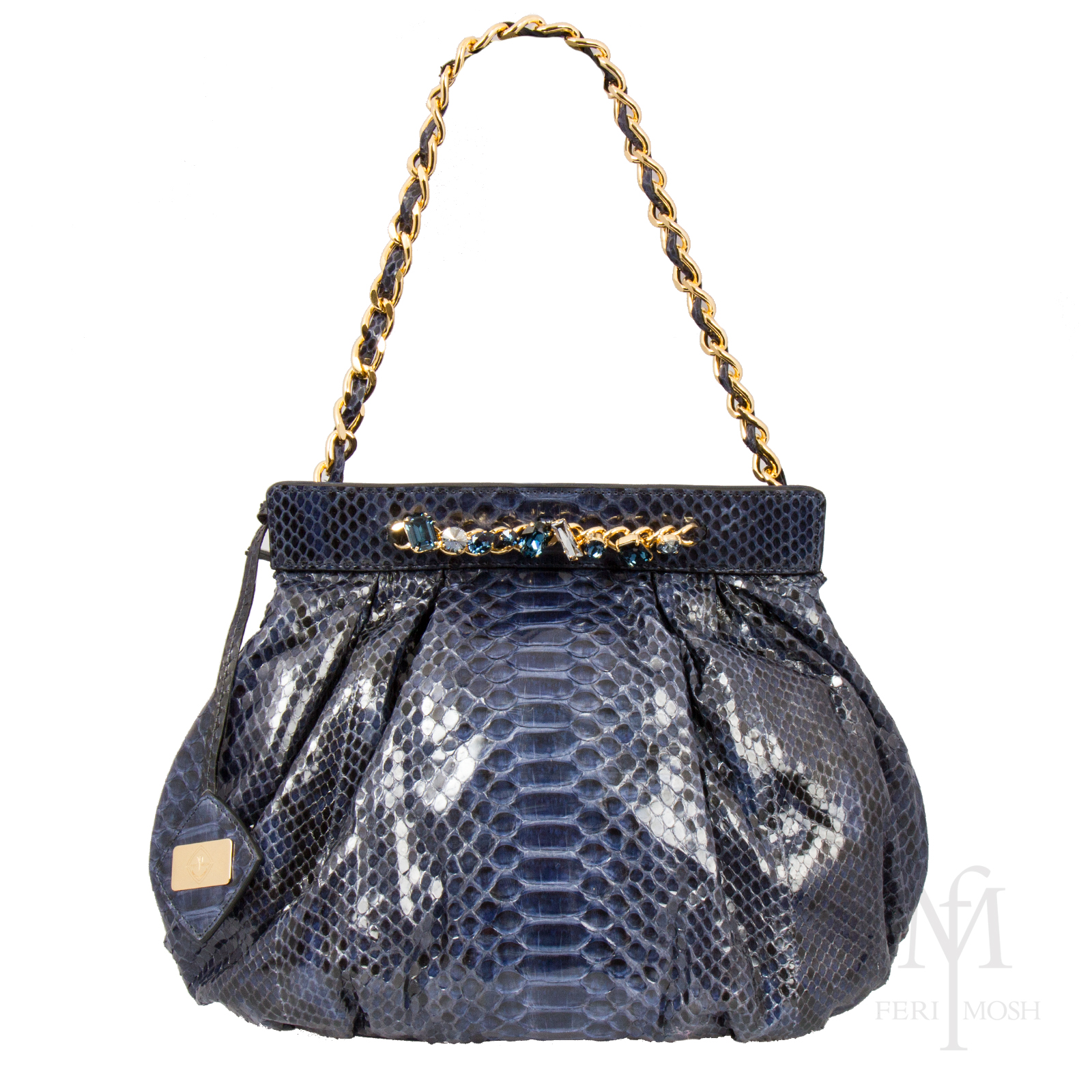 - Gold toned chain shoulder strap with python interweave
