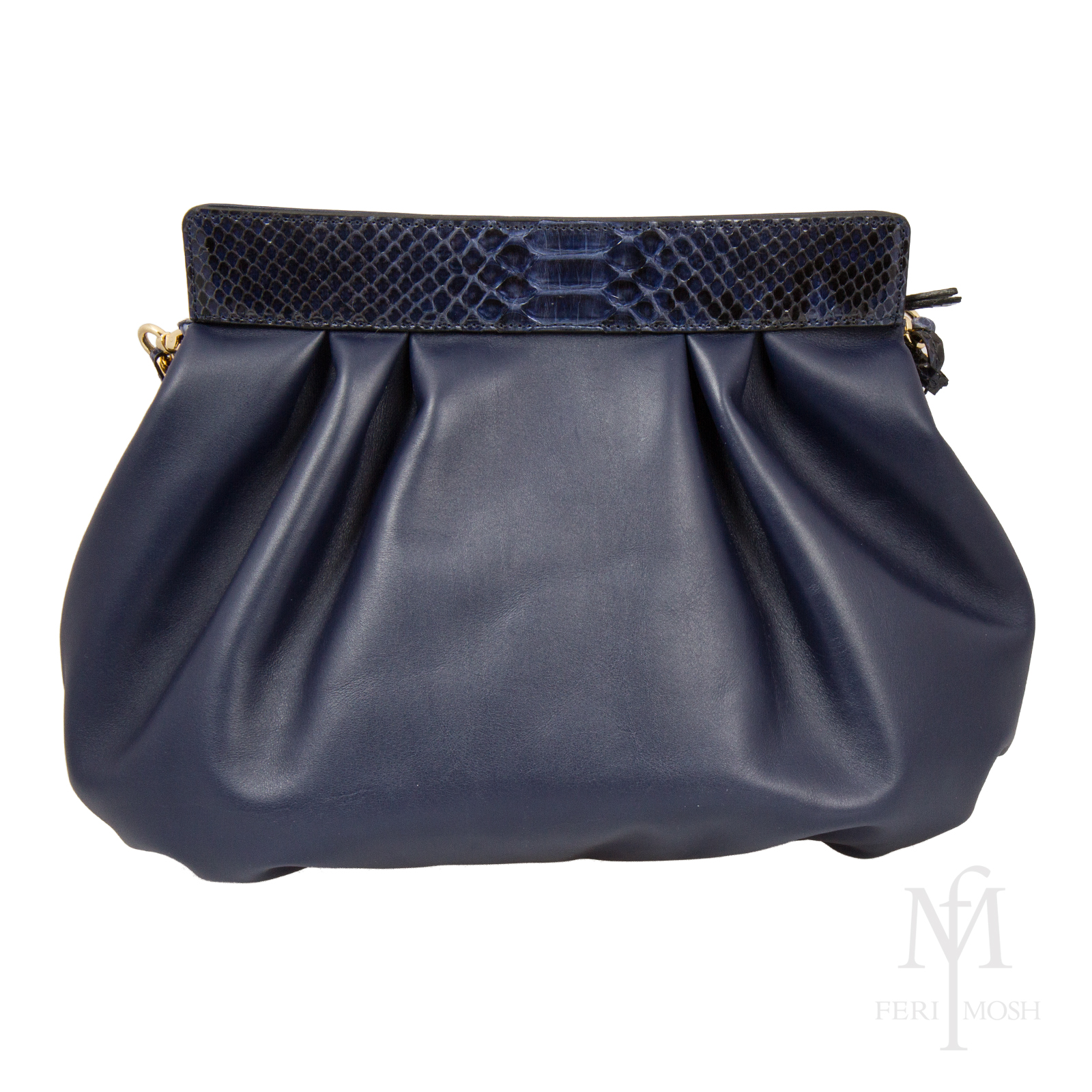 - Blue genuine python skin and nappa leather evening bag