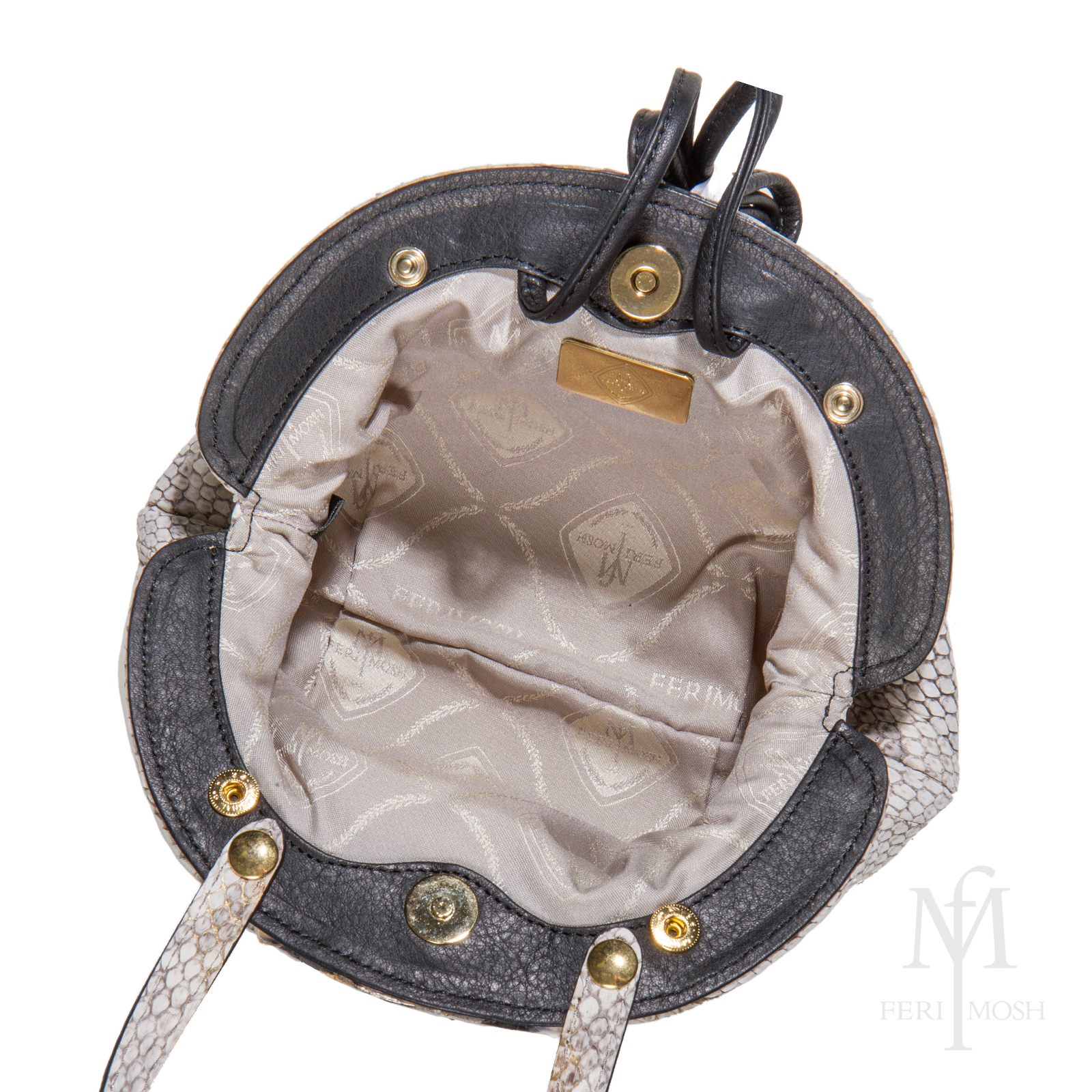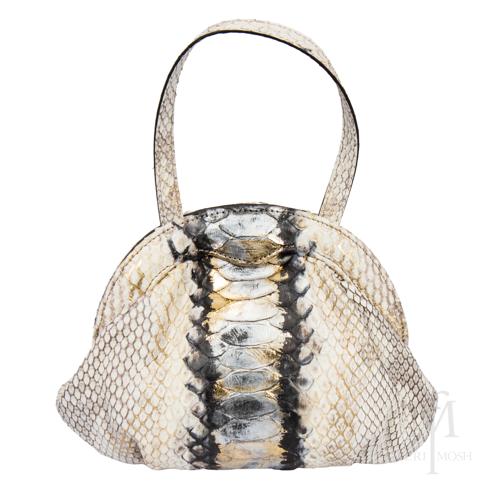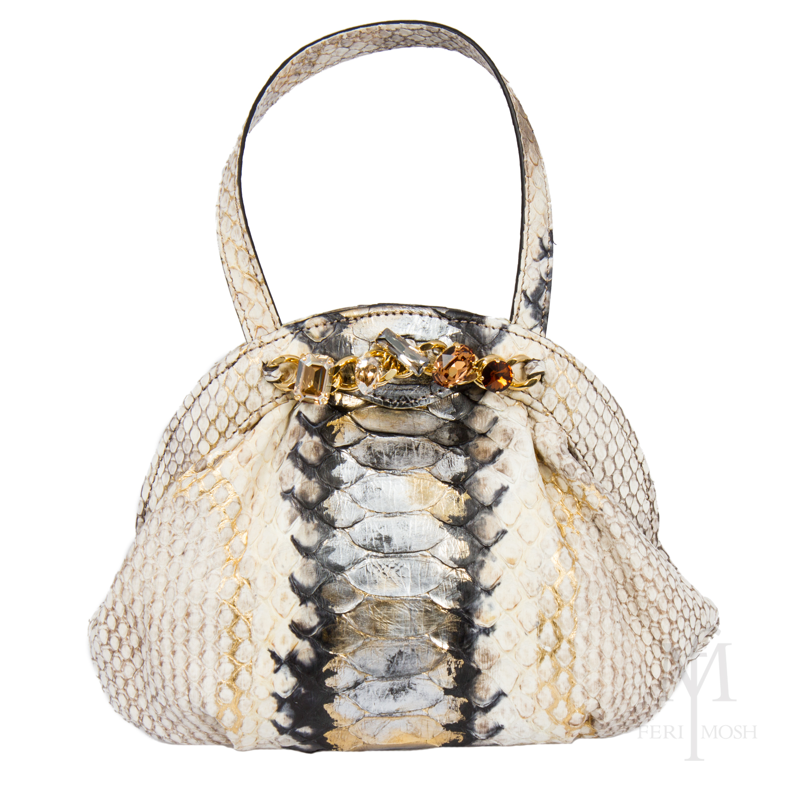 - Cream and black Metallic genuine python and nappa leather evening bag
