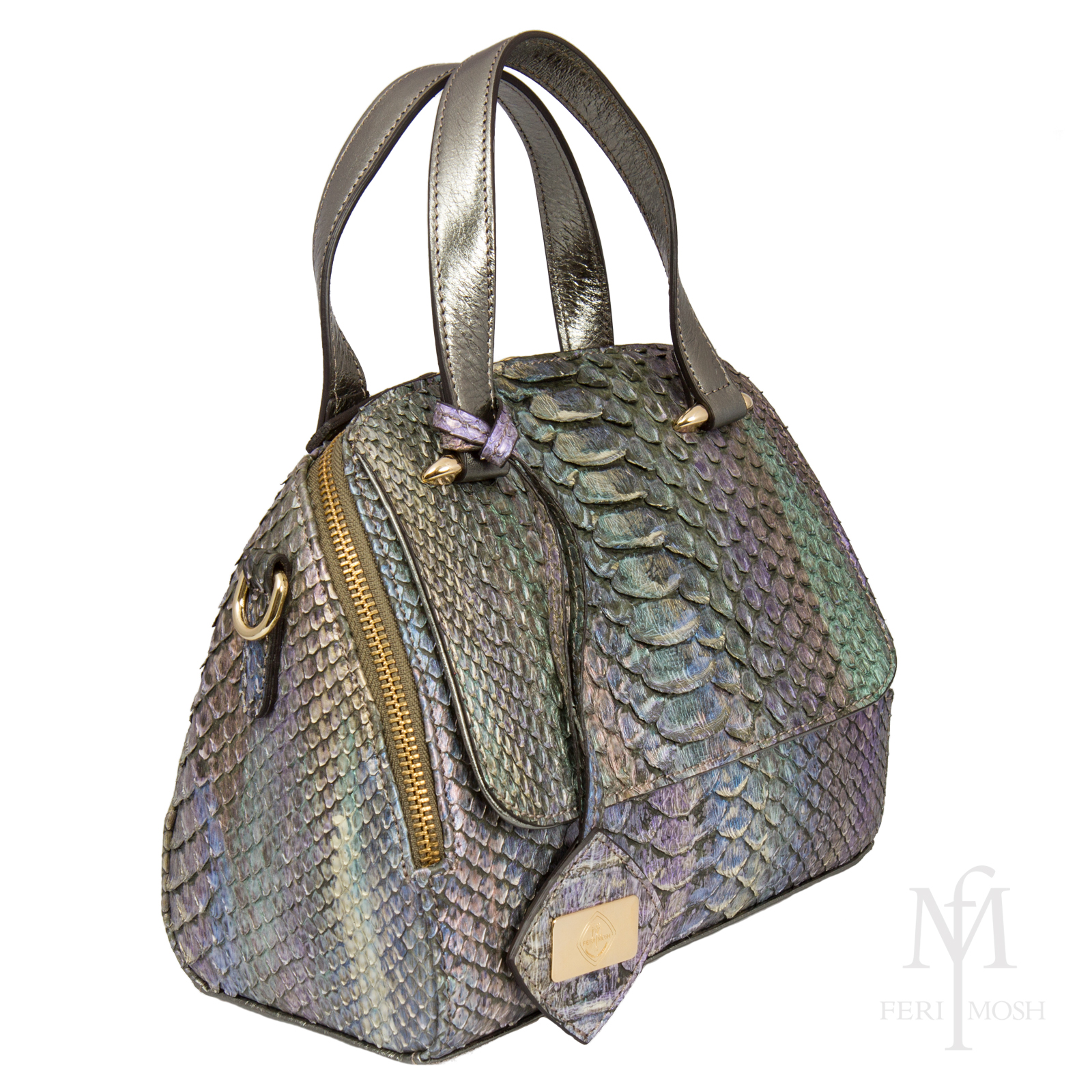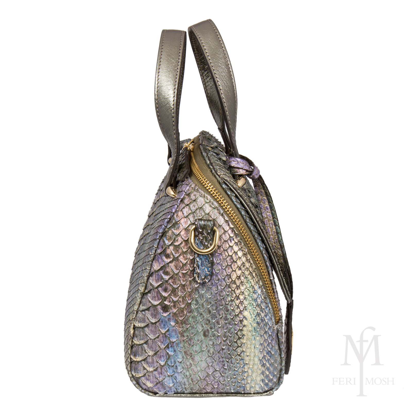 - Multi-coloured Metallic genuine python and nappa leather bag