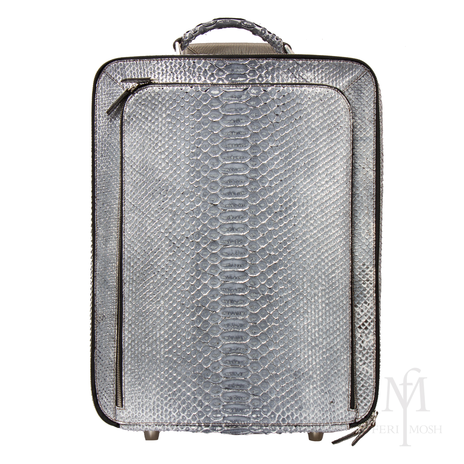 - Blue Metallic genuine python and nappa leather large roller luggage