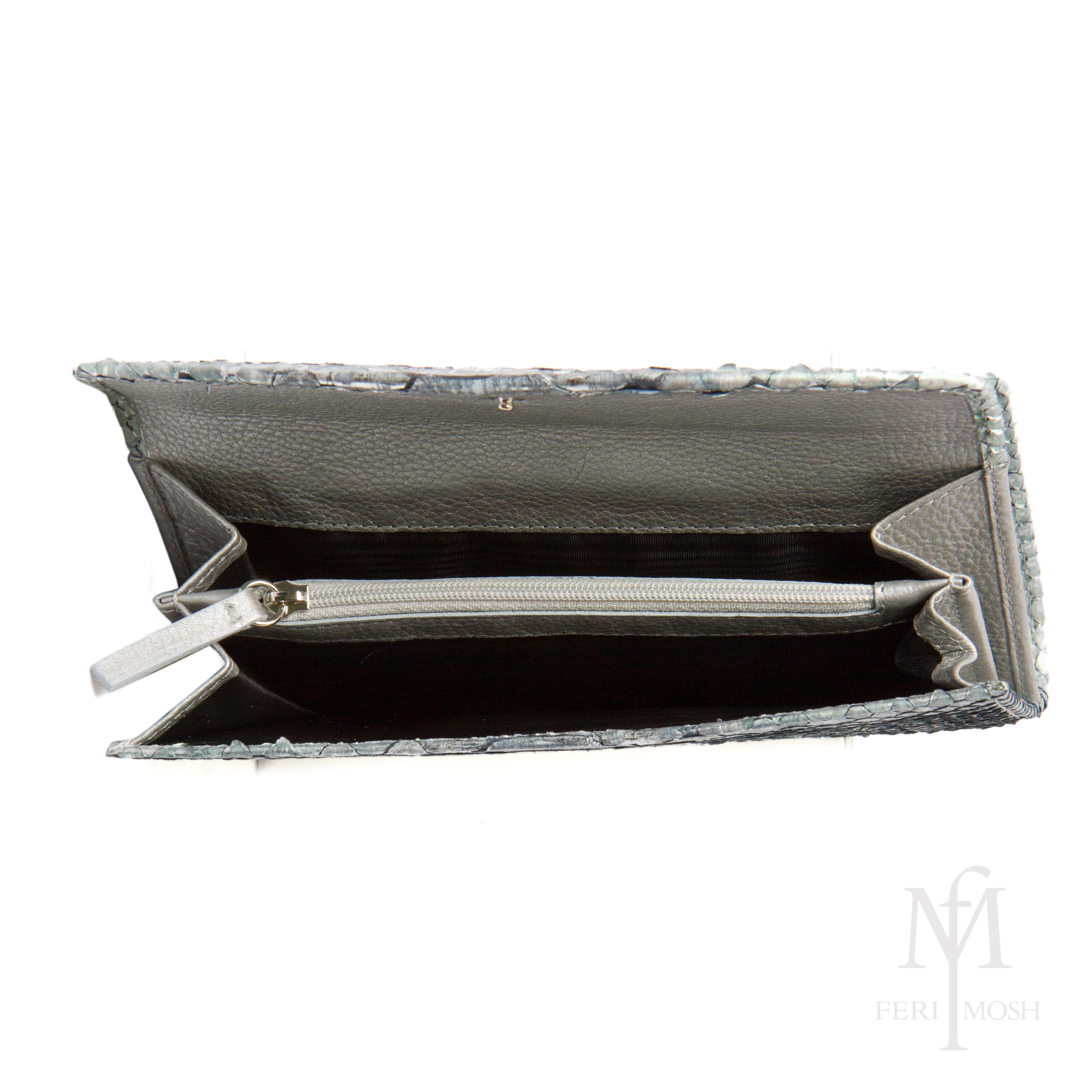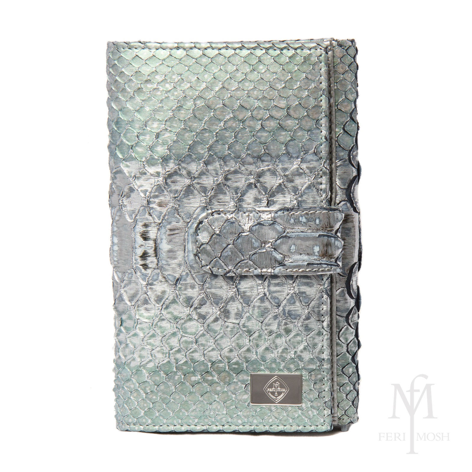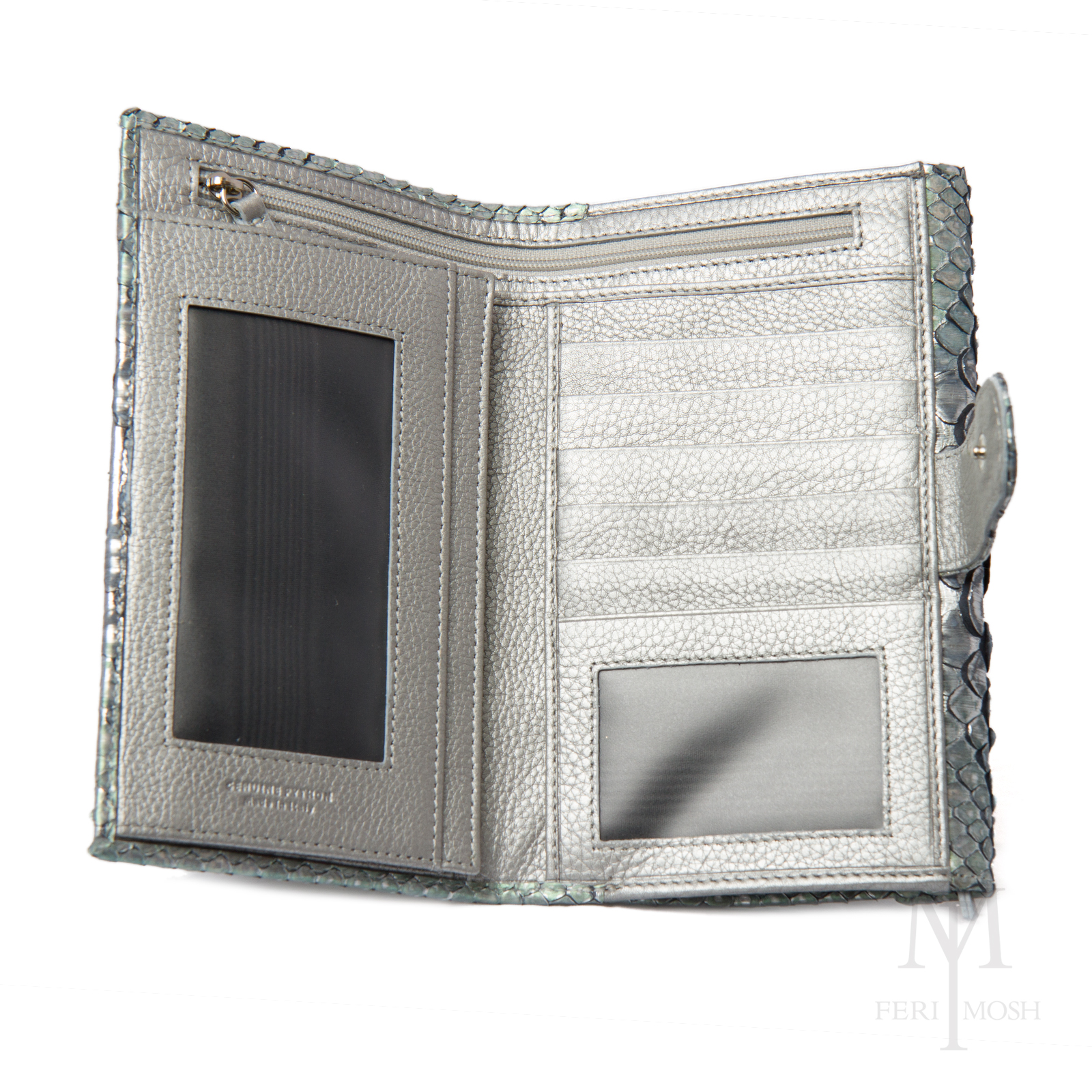 - Blue metallic coloured dual sided genuine python skin pocketbook
