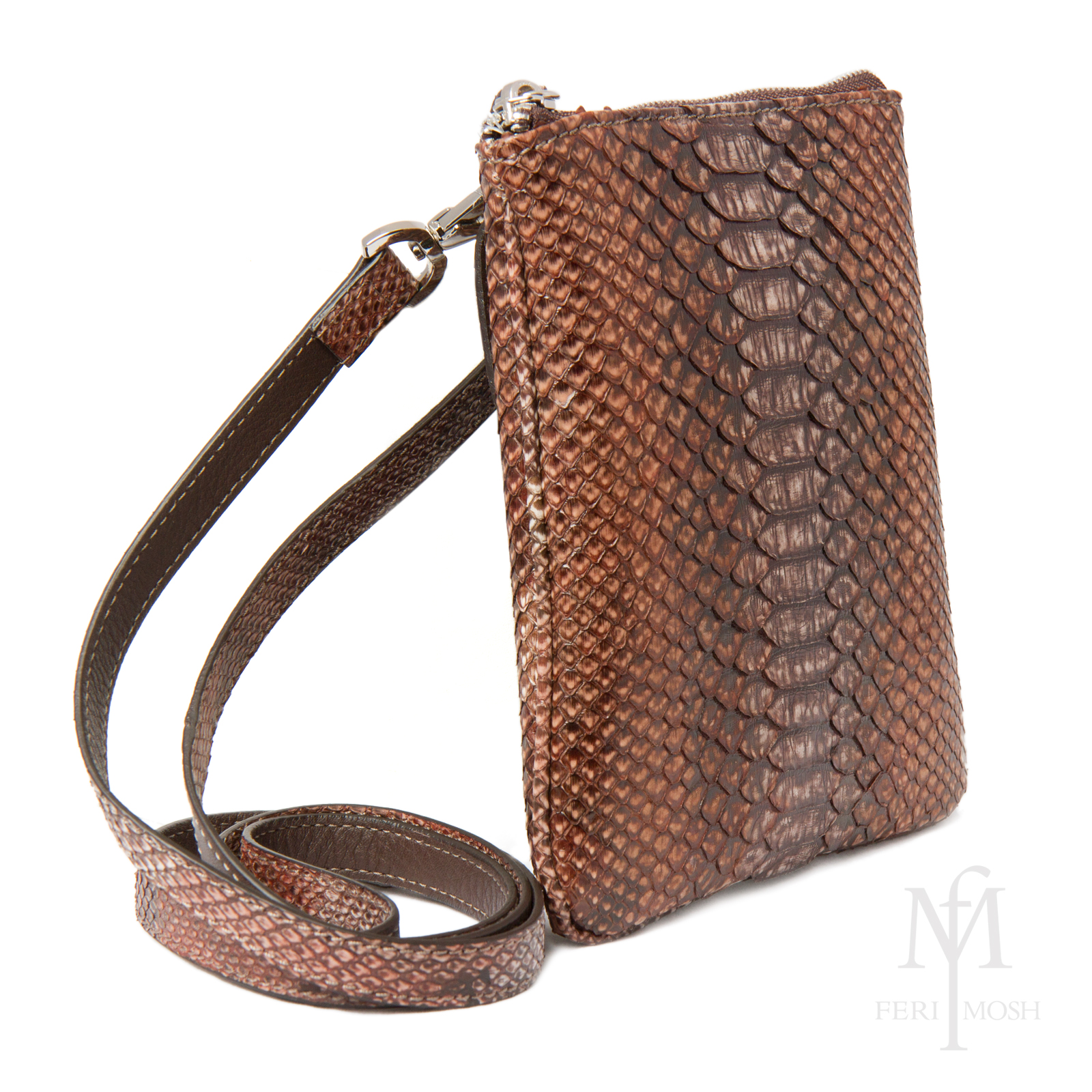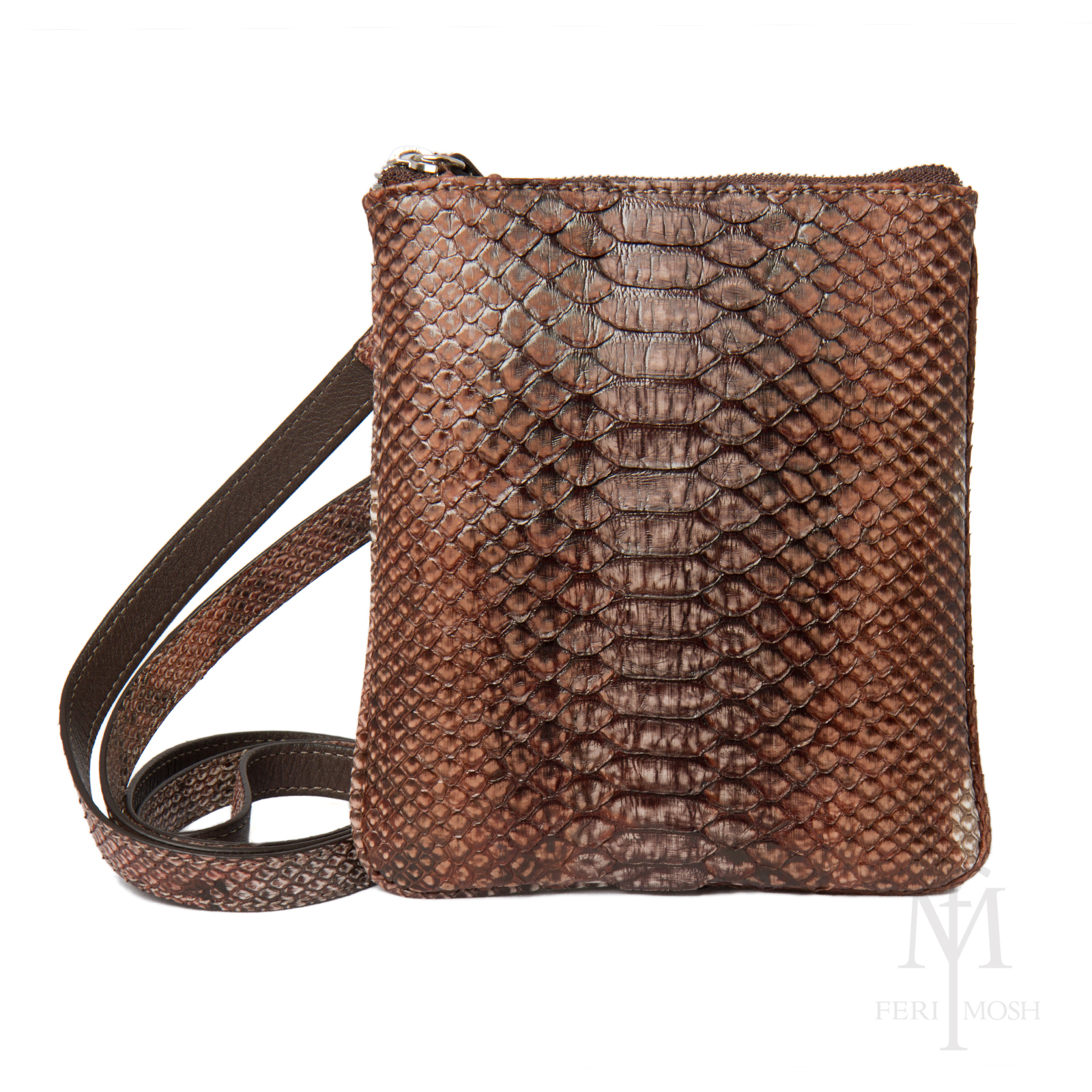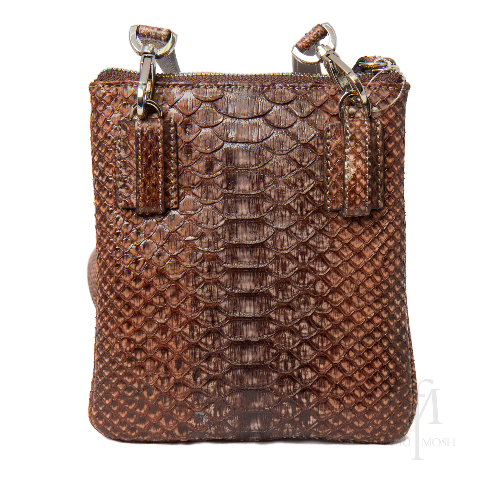 - Deep brown genuine python and nappa leather crossbody shoulder bag