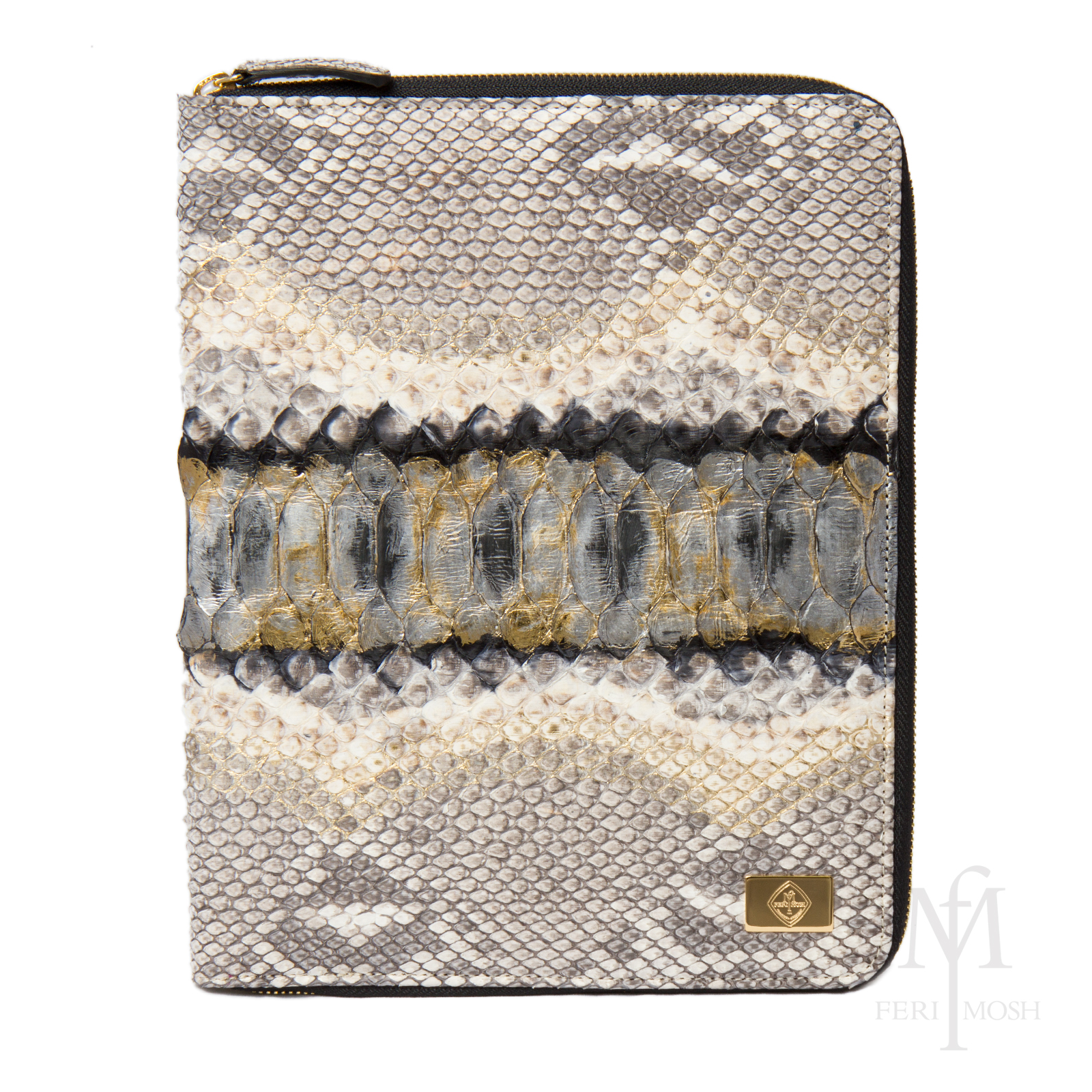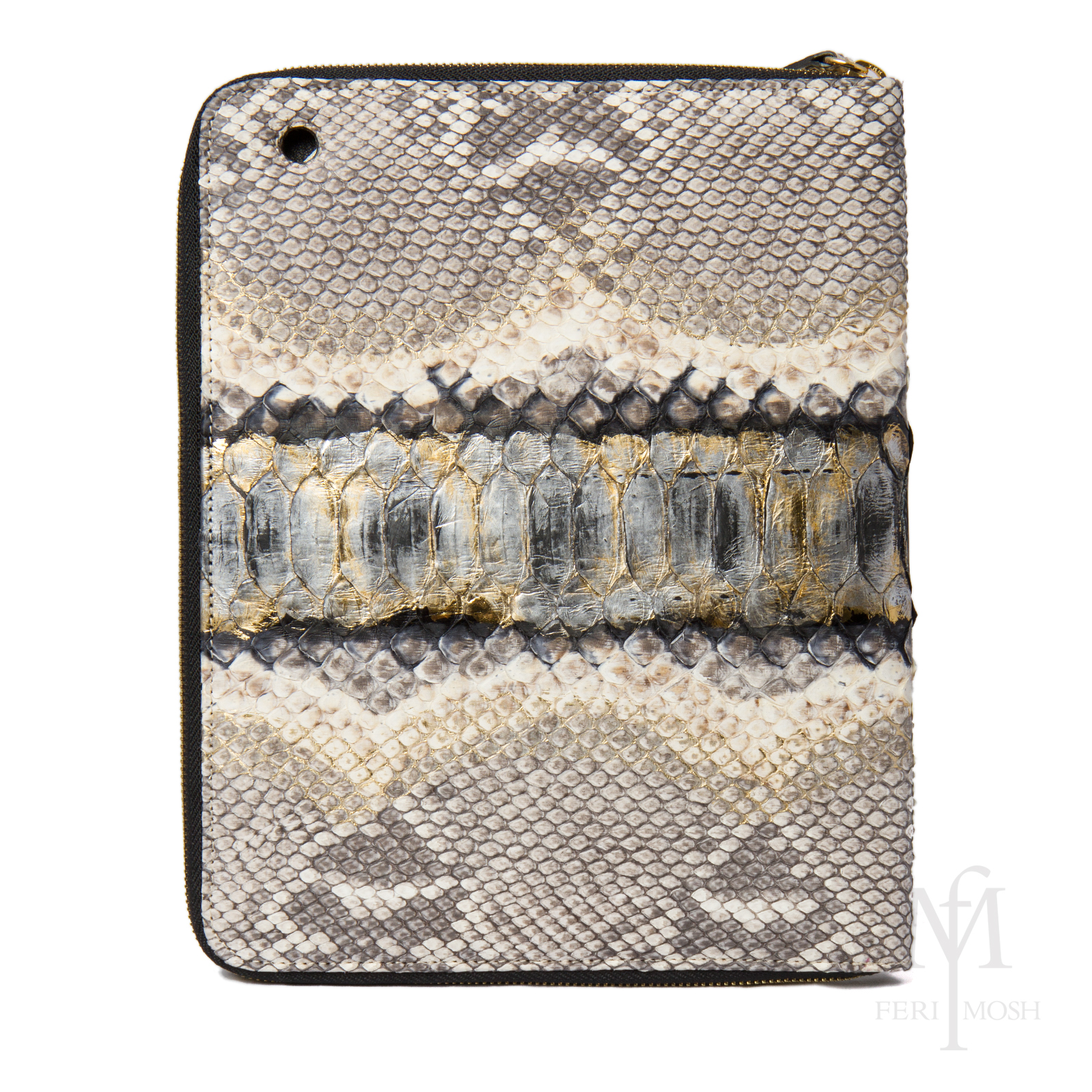 - Cream and black genuine python and nappa leather iPad case