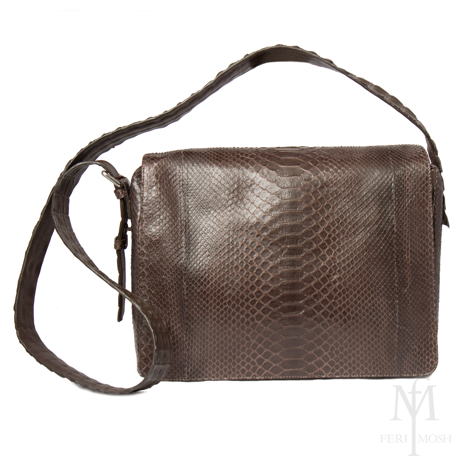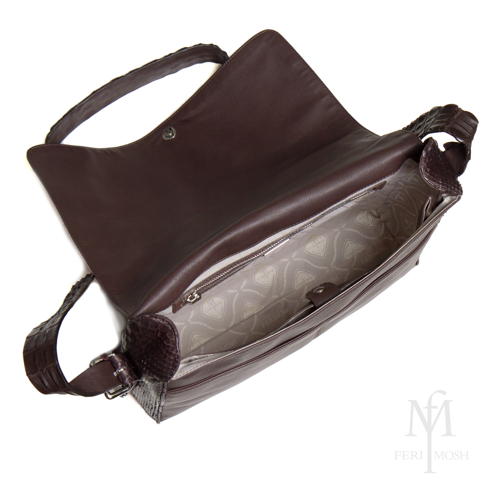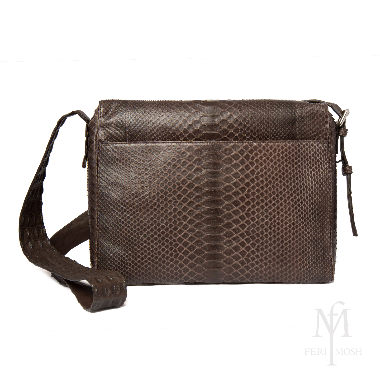 - Deep Brown genuine python and nappa leather crossbody satchel