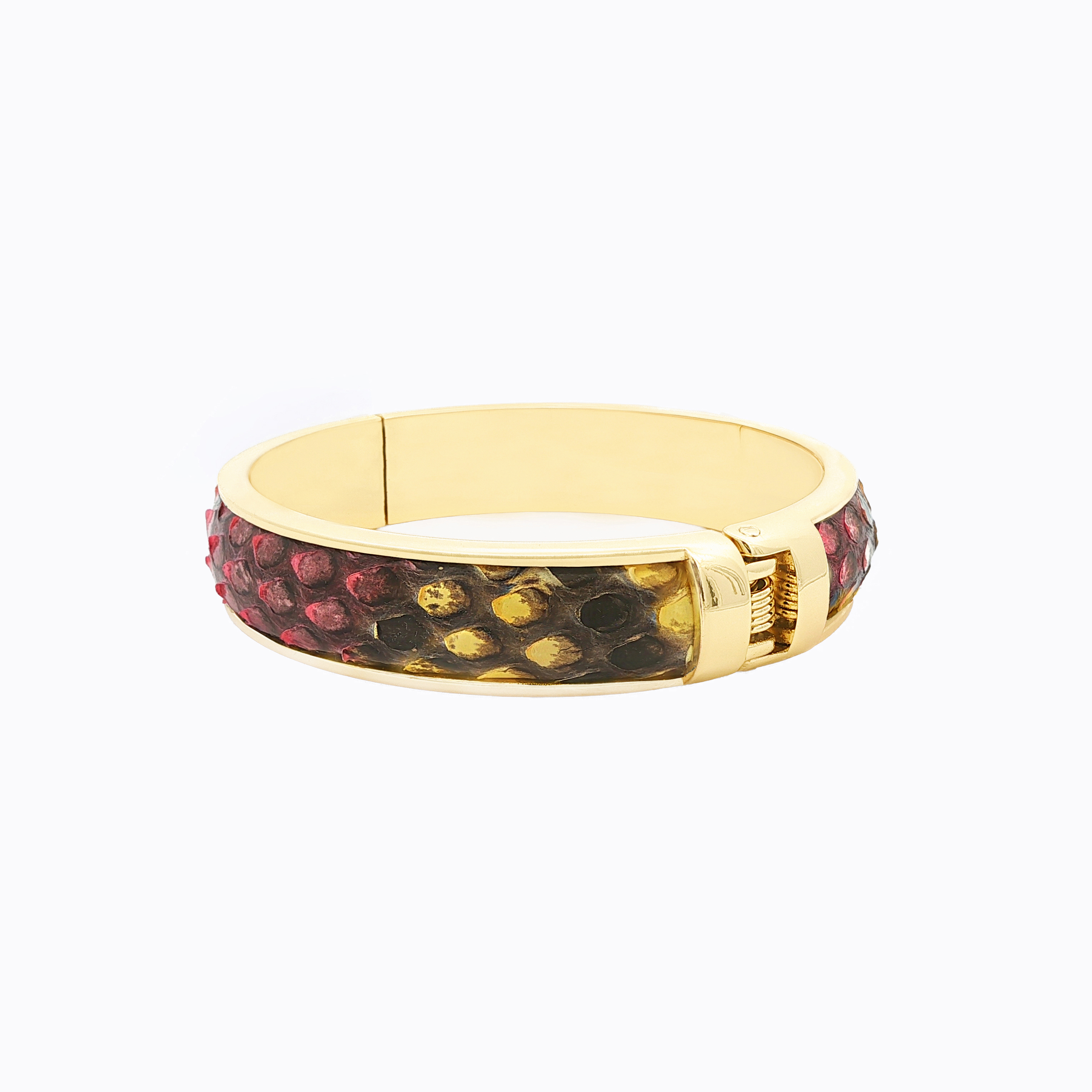 - The bangle’s Malayopython reticulatus skin color stands out, making it a bold accessory for any outfit.
