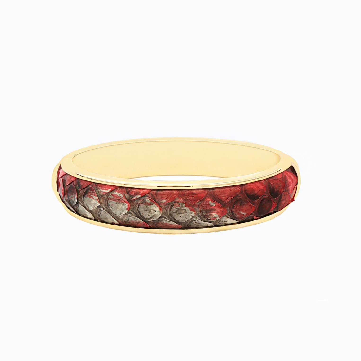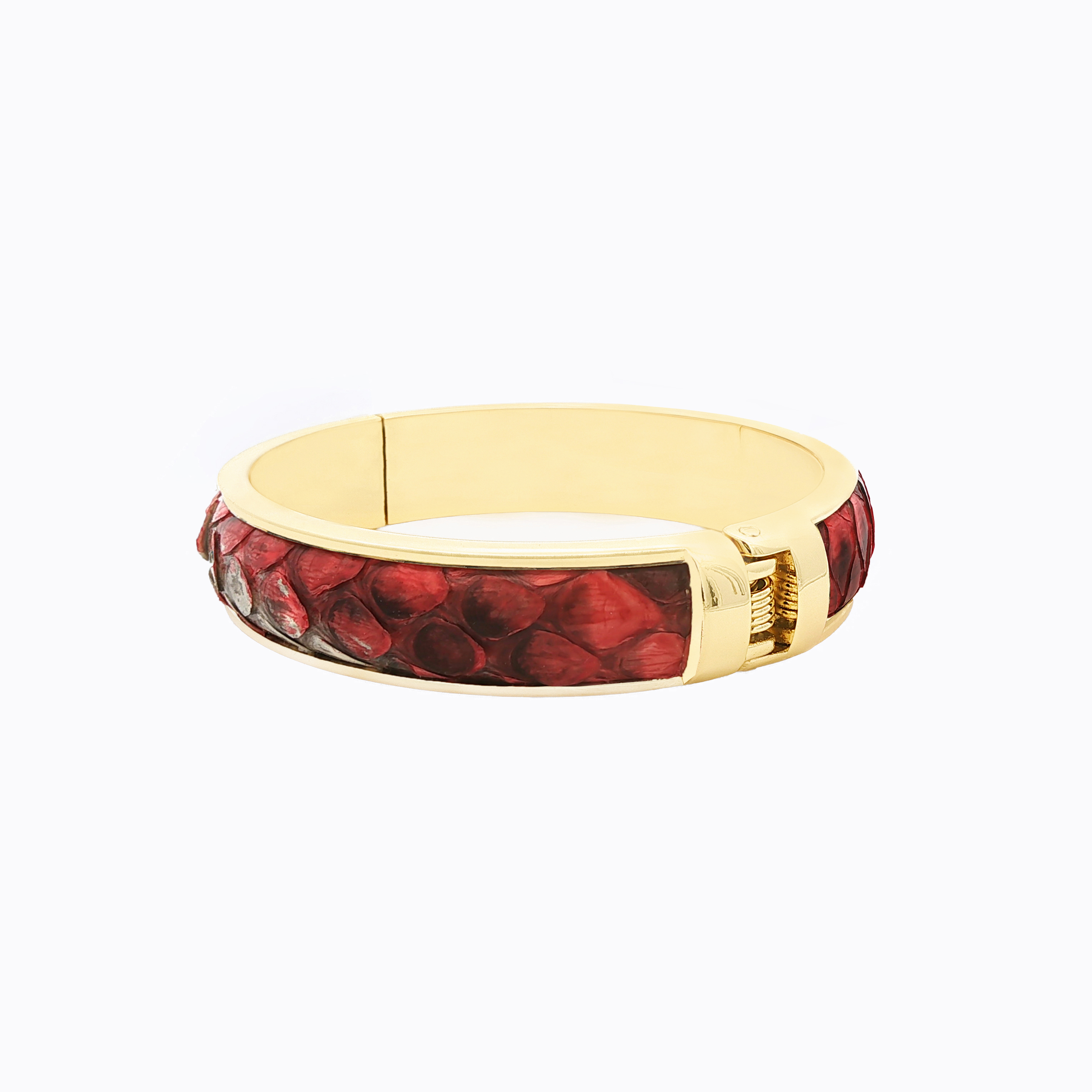 - The bangle’s Malayopython reticulatus skin color stands out, making it a bold accessory for any outfit.