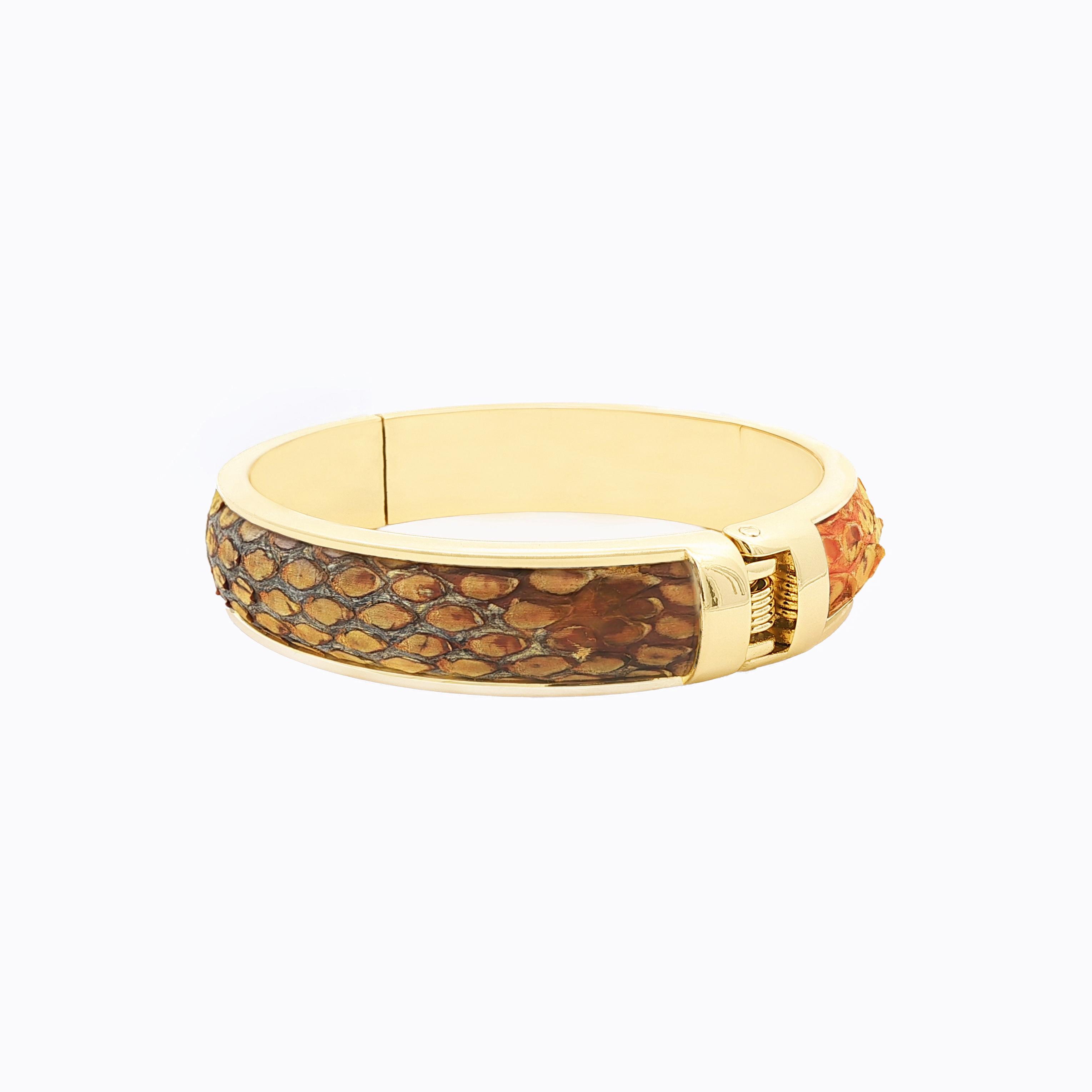 - The bangle’s Malayopython reticulatus skin color stands out, making it a bold accessory for any outfit.