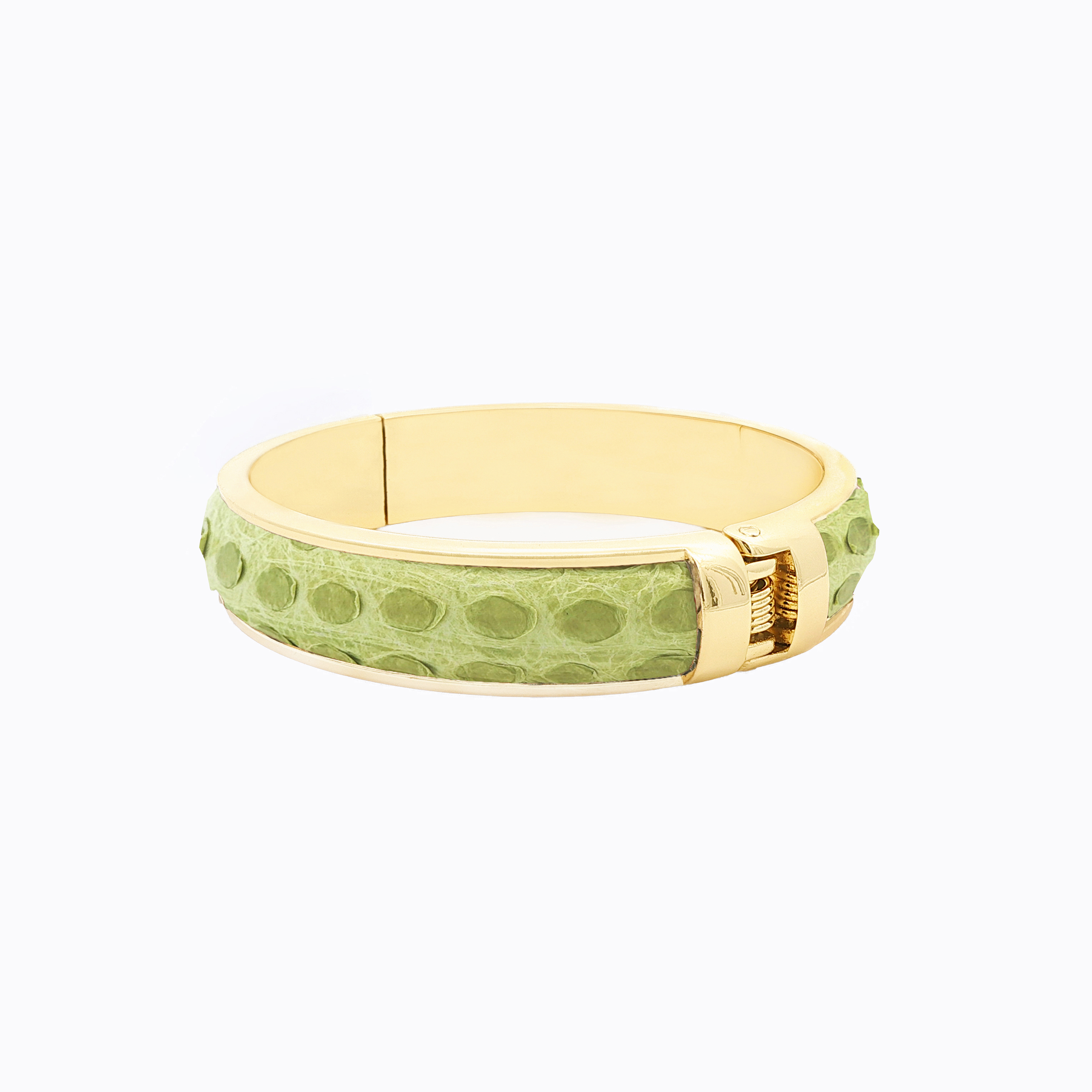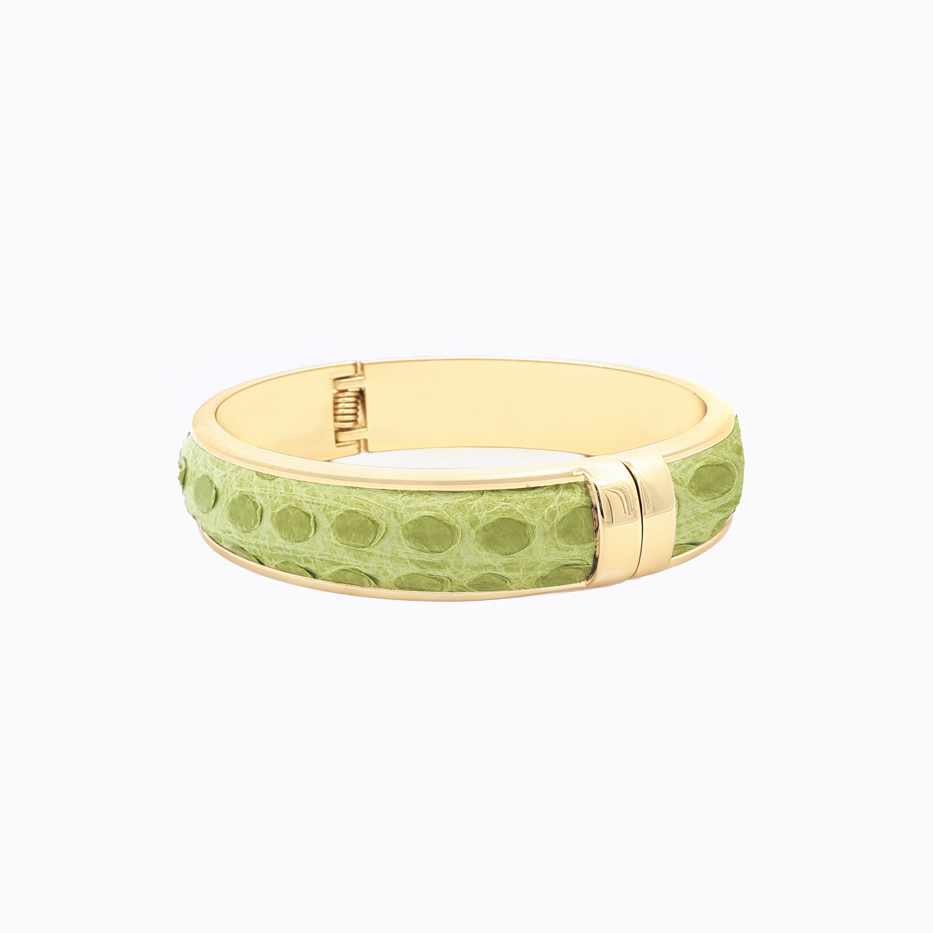 - The bangle’s Malayopython reticulatus skin color stands out, making it a bold accessory for any outfit.