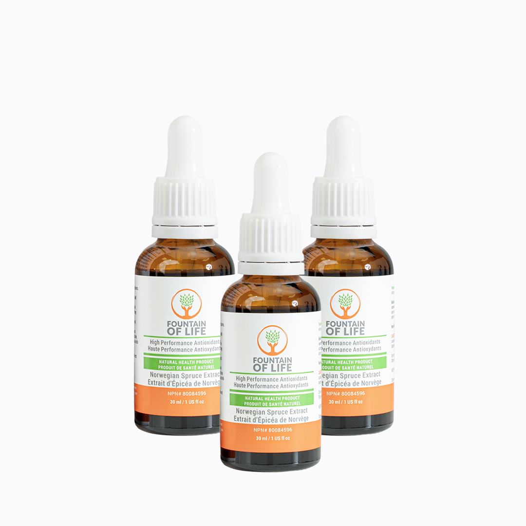 Fountain of Life captures the power of the Picea Abies extract from the Norwegian Spruce growing in Northern Finland. Thriving under the harshest of conditions, this tree has adapted to the extreme environment in which it lives. Researchers discovered that this tree contains the most powerful source of lignans in nature. Lignans are antioxidants found in the cell walls of plants.