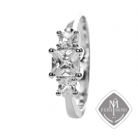 FERI MOSH- Part of the 19K Bridal Signature Series - Hand crafted square modified brilliant diamond 19K ring - Three-stone combination - Can be an engagement ring, anniversary or wedding ring - Uses the latest gold smith technology - Meticulous craftsmanship and a...