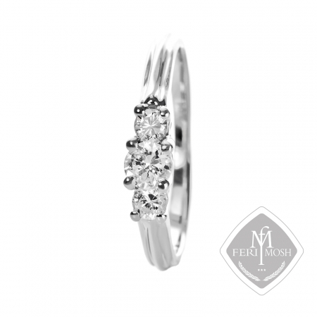 FERI MOSH- Part of the 19K Bridal Signature Series - Hand crafted three stone round brilliant cut 19K diamond ring - Can be an engagement ring, anniversary ring, or a family ring - Uses the latest gold smith technology - Meticulous craftsmanship and attention to de...
