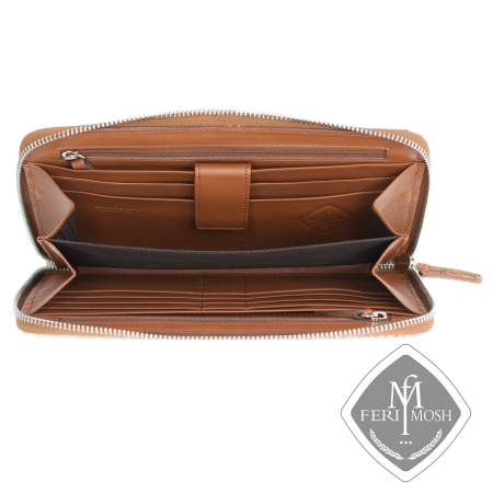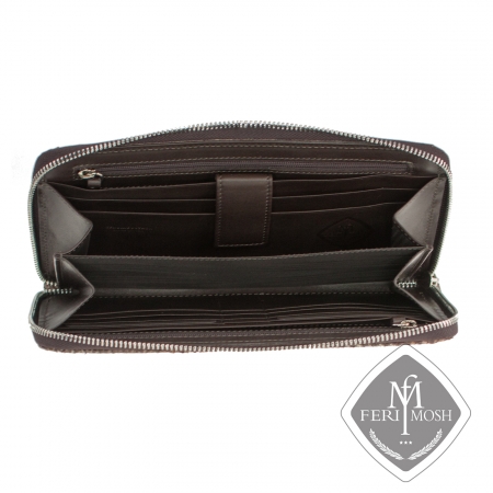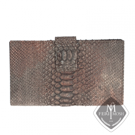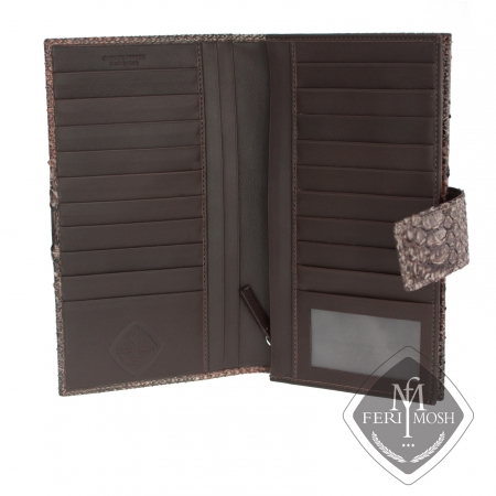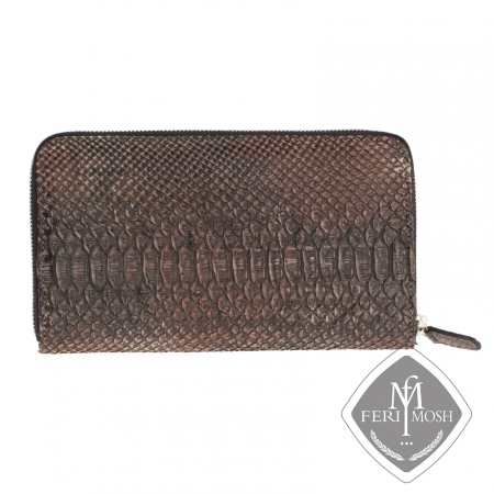 FERI MOSH- Brown genuine python leather zippered pocketbook - Exterior slit pocket with top stitching - Quality metal zipper closure - Interior lined with nappa leather - Accordion style opening - 2 zippered pockets - Space for 8 cards - Ample space and slits...
