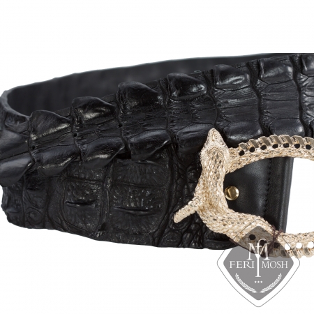 FERI MOSH- Black genuine alligator skin belt - Made with real alligator skin - Silver plated buckle in snake design - Made in Italy Dimension: - Varied 4.33" (11cm) width FERI MOSH - Above All!...