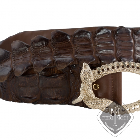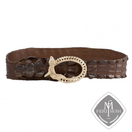 FERI MOSH- Deep brown genuine alligator skin belt - Made with real alligator skin - Gold plated buckle in snake design - Made in Italy Dimension: - Varied 4.33" (11cm) width FERI MOSH - Above All!...