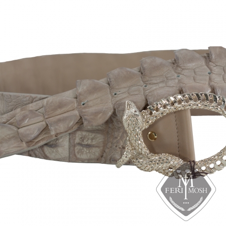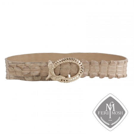 FERI MOSH- Light brown genuine alligator skin belt - Made with real alligator skin - Gold plated buckle in snake design - Made in Italy Dimension: - Varied 4.33" (11cm) width FERI MOSH - Above All!...
