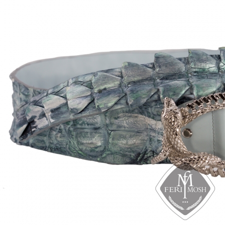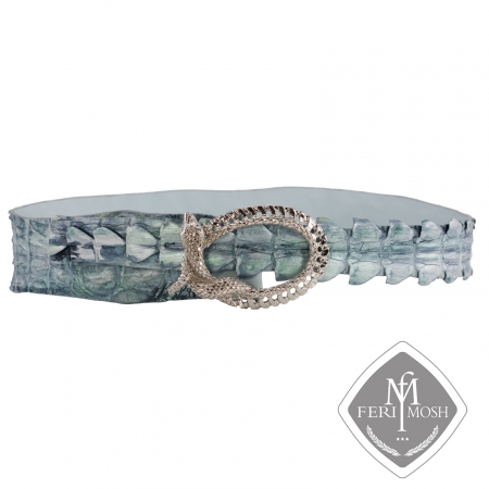 FERI MOSH- Light blue genuine alligator leather belt - Made with real alligator skin - Silver plated buckle in snake design - Made in Italy Dimension: - Varied 4.33" (11cm) width FERI MOSH - Above All!...