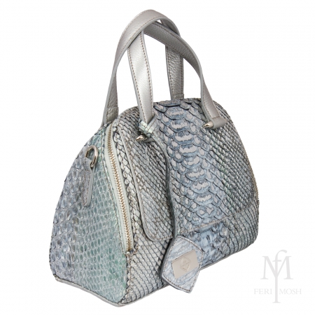 FERI MOSH- Blue Metallic genuine python and nappa leather bag - Made with python skin and nappa leather - Embellished with exclusive FERI MOSH bag tag - Zippered top closure with flap - Durable nappa leather handles - 1 Main compartment - Lined with customized ...