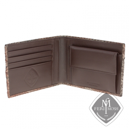 FERI MOSH- Brown genuine python leather small fold wallet - Made from real python skin and nappa leather - Single fold wallet with space for 4 cards - Change pouch with metal button closure - 4 small slits for receipt storage - 2 top slits for cash and cheques -...