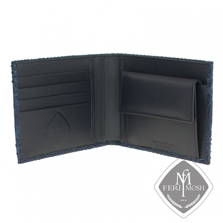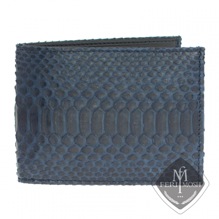 FERI MOSH- Navy blue genuine python leather small fold wallet - Made from real python skin and nappa leather - Single fold wallet with space for 4 cards - Change pouch with metal button closure - 4 small slits for receipt storage - 2 top slits for cash and chequ...
