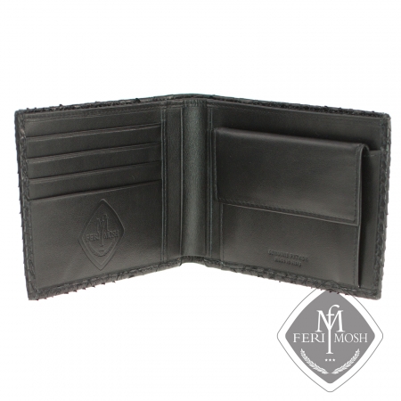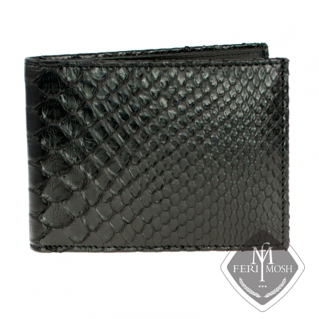 FERI MOSH- Black genuine python leather small fold wallet - Made from real python skin and nappa leather - Single fold wallet with space for 4 cards - Change pouch with metal button closure - 4 small slits for receipt storage - 2 top slits for cash and cheques ...