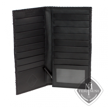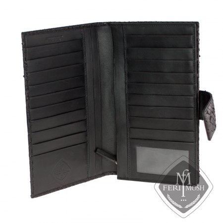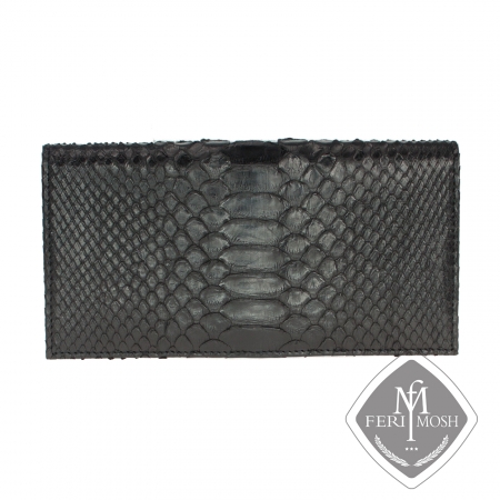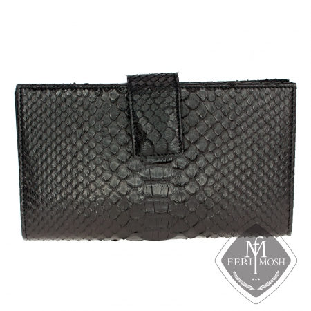 FERI MOSH- Black large genuine python leather pocketbook - Made from premium genuine python skin and nappa leather - Strap closure - Space for 20 cards - Single accordion slot with zippered pouch for change - 3 long slits for cash or cheques - FERI MOSH logo em...
