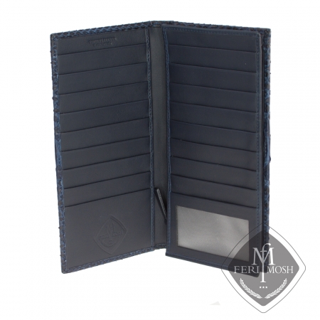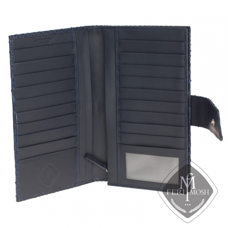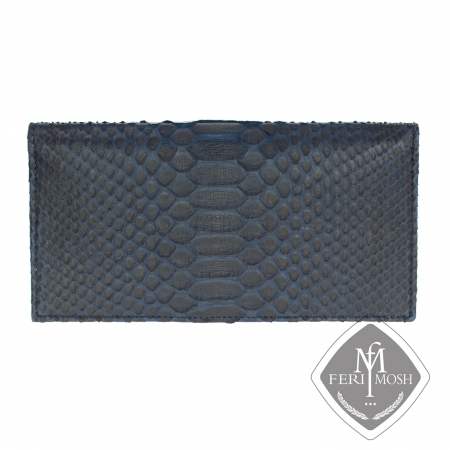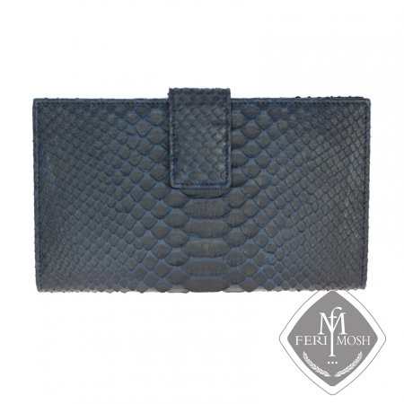 FERI MOSH- Navy blue large genuine python leather pocketbook - Made from premium genuine python skin and nappa leather - Strap closure - Space for 20 cards - Single accordion slot with zippered pouch for change - 3 long slits for cash or cheques - FERI MOSH log...