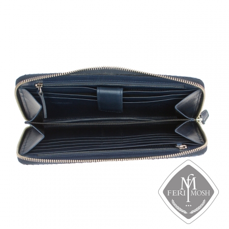 FERI MOSH- Navy blue genuine python leather zippered pocketbook - Exterior slit pocket with top stitching - Quality metal zipper closure - Interior lined with nappa leather - Accordion style opening - 2 zippered pockets - Space for 8 cards - Ample space and s...