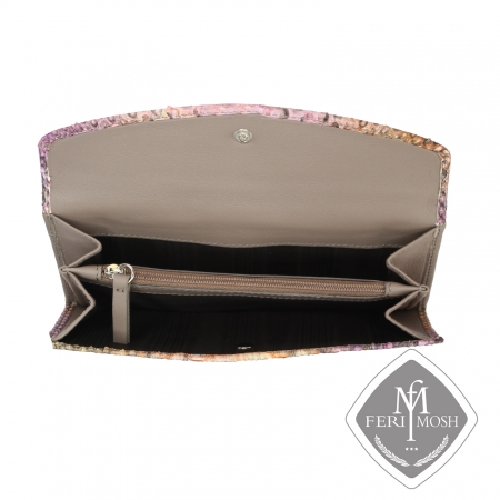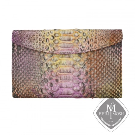 FERI MOSH- Multi-coloured dual sided genuine python skin pocket book - One side flap closure opens to 2 compartments separated by a zippered pouch - Lined with nappa leather - One side strap closure opens to 1 large ID window - Space for 12 cards - 1 open slot fo...