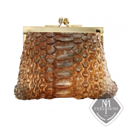 FERI MOSH- Golden brown genuine python change purse - Made with genuine hand dyed python skin - Gold plated opening with ball and socket closure - Nappa leather lining with FERI MOSH logo embossed inside - Made in Italy Dimensions: - 3.94" x 3.15" (10cm x 8...