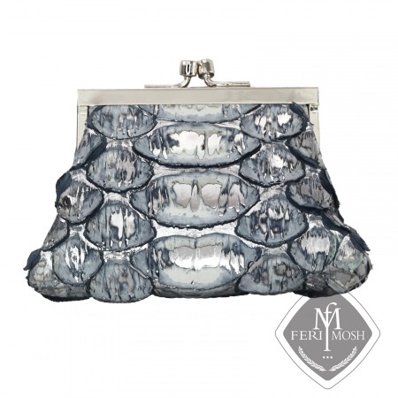 FERI MOSH- Metallic blue genuine python change purse - Made with genuine hand dyed python skin - Gold plated opening with ball and socket closure - Nappa leather lining with FERI MOSH logo embossed inside - Made in Italy Dimensions: - 3.94" x 3.15" (10cm x 8...