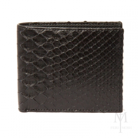 FERI MOSH- Black genuine python leather fold wallet - Made from real python skin and nappa leather - Single fold wallet with space for 8 cards - 2 top slits for cash and cheques - Made in Italy Dimensions: - 11.7cm x 9.5cm x 2.5cm (4.6" x 3.5" x 1") FERI MO...