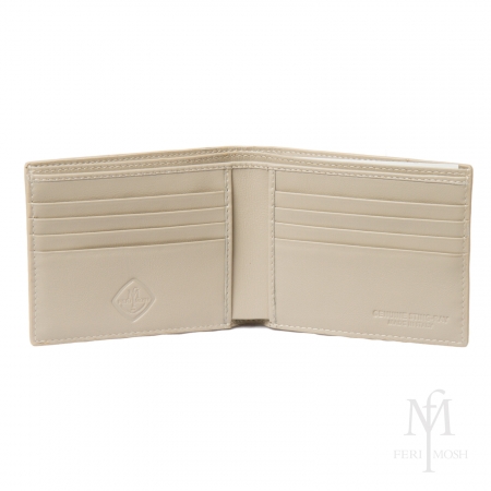 FERI MOSH- Camel genuine Stingray leather fold wallet - Made from real Stingray skin and nappa leather - Single fold wallet with space for 8 cards - 2 top slits for cash and cheques - Colour: Camel Dimensions: - 11.7cm x 9.5cm x 2.5cm (4.6" x 3.5" x 1") FER...