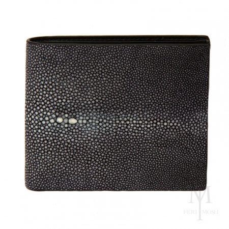 FERI MOSH- Black genuine Stingray leather fold wallet - Made from real Stingray skin and nappa leather - Single fold wallet with space for 8 cards - 2 top slits for cash and cheques - Colour: Black Dimensions: - 11.7cm x 9.5cm x 2.5cm (4.6" x 3.5" x 1") FE...