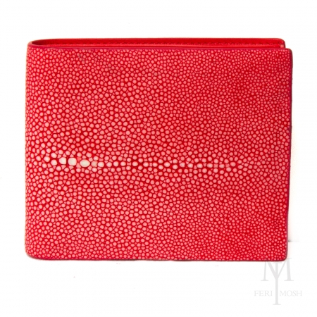 FERI MOSH- Coral genuine Stingray leather fold wallet - Made from real Stingray skin and nappa leather - Single fold wallet with space for 8 cards - 2 top slits for cash and cheques - Colour: Red Dimensions: - 11.7cm x 9.5cm x 2.5cm (4.6" x 3.5" x 1") FERI...