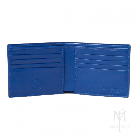 FERI MOSH- Bright blue genuine Stingray leather fold wallet - Made from real Stingray skin and nappa leather - Single fold wallet with space for 8 cards - 2 top slits for cash and cheques - Colour: Ocean Blue Dimensions: - 11.7cm x 9.5cm x 2.5cm (4.6" x 3.5" x...