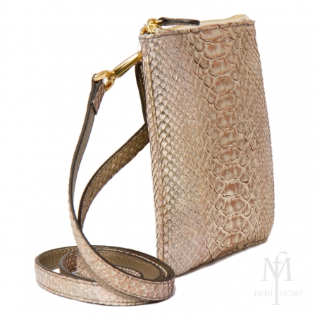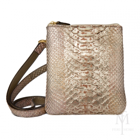 FERI MOSH- Gold metallic genuine python and nappa leather evening bag - Made with python skin - Zip top closure - Python and nappa leather removable shoulder strap - With belt loops to wear as a waist pack - Main compartment with zipper pouch - Lined with custo...
