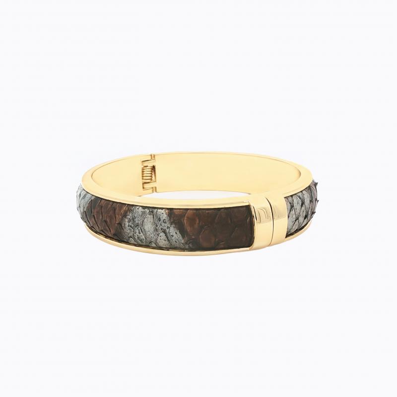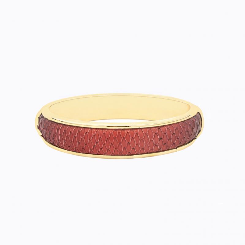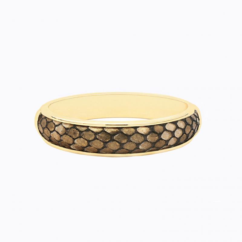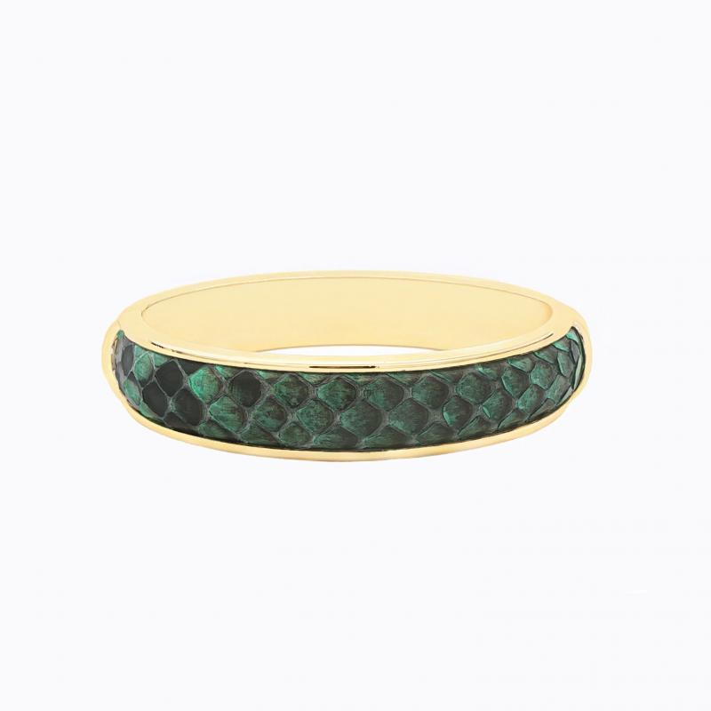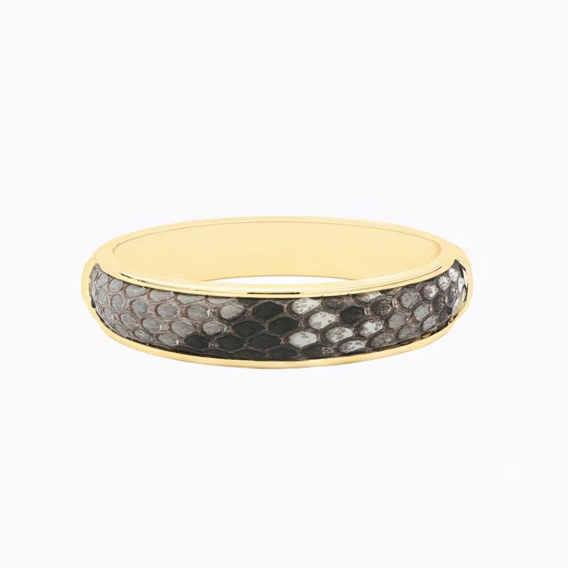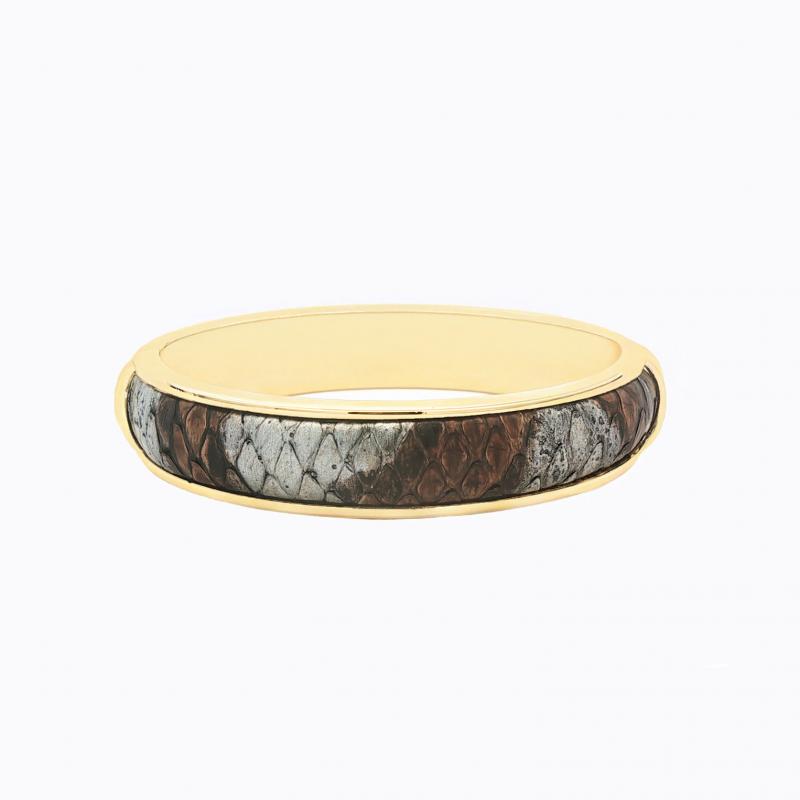 FERI MOSHMalayopython Reticulatus Bracelet - This bangle features a sleek brass construction with a polished gold finish that adds a touch of elegance. - The exterior is adorned with a textured pattern of Malayopython reticulatus skin, providing both visual intere...