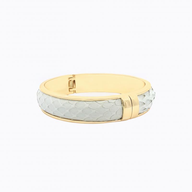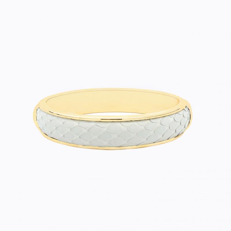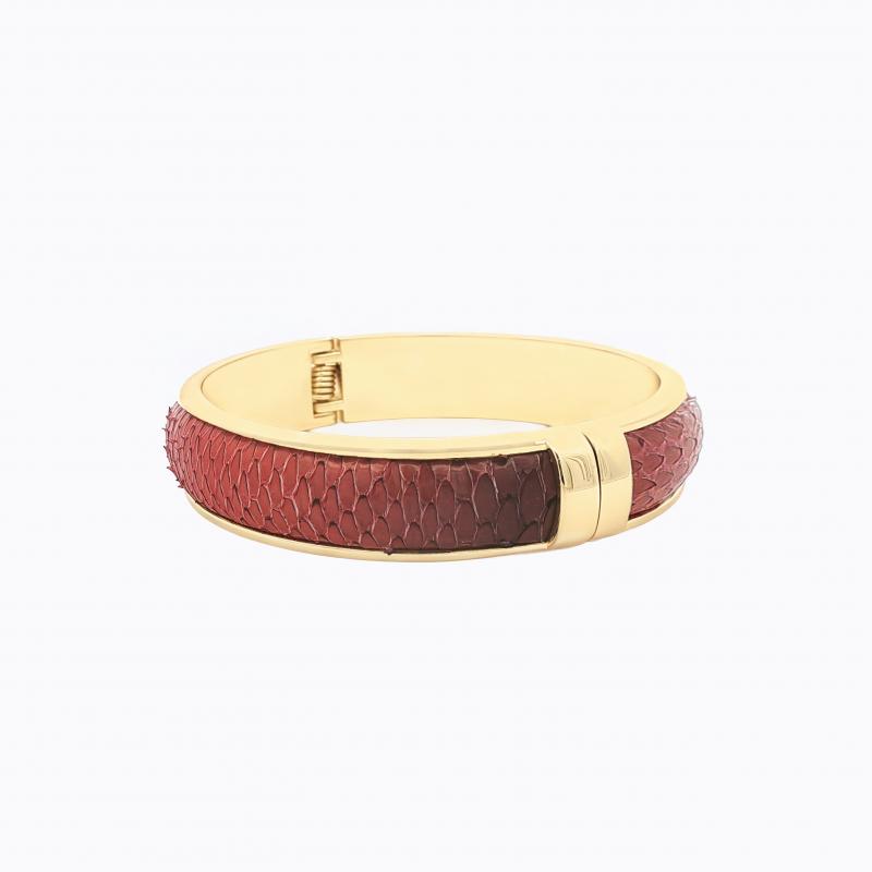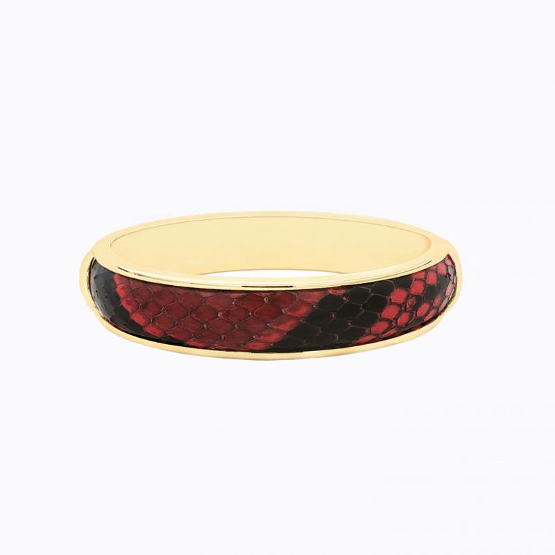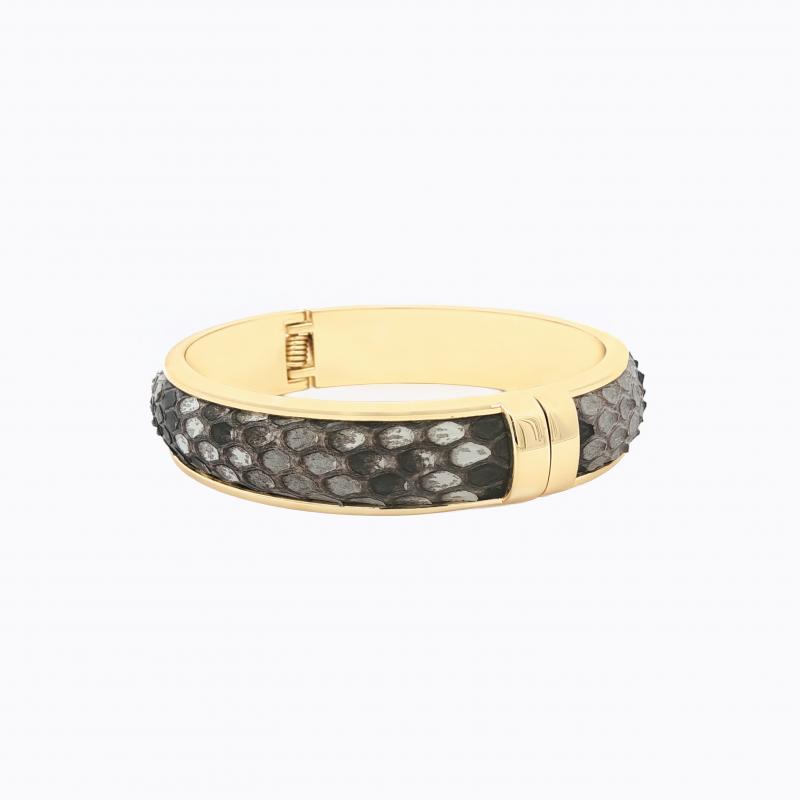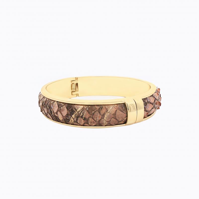 FERI MOSHMalayopython Reticulatus Bracelet - This bangle features a sleek brass construction with a polished gold finish that adds a touch of elegance. - The exterior is adorned with a textured pattern of Malayopython reticulatus skin, providing both visual intere...