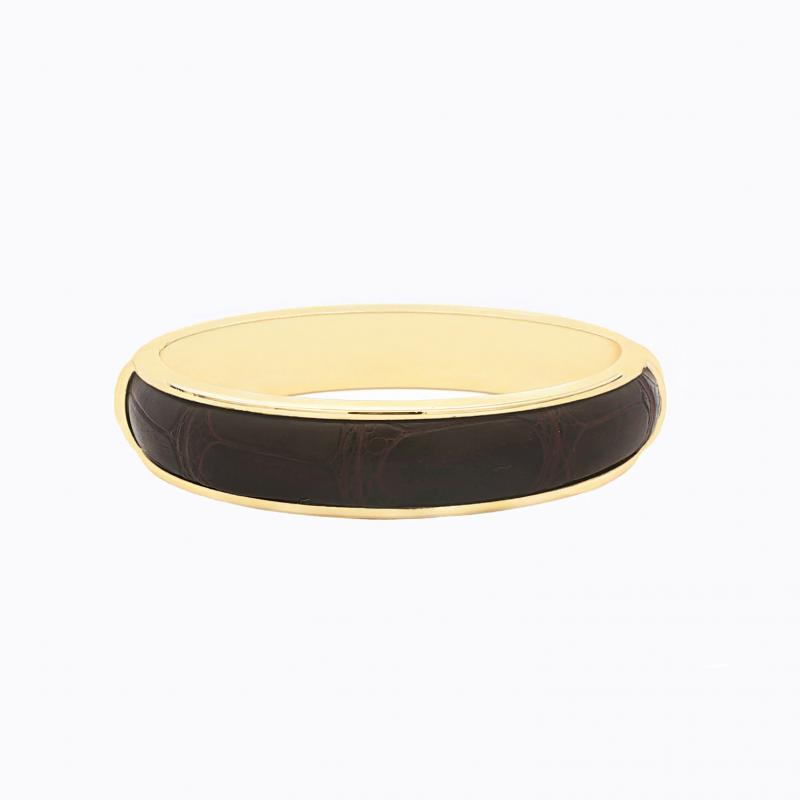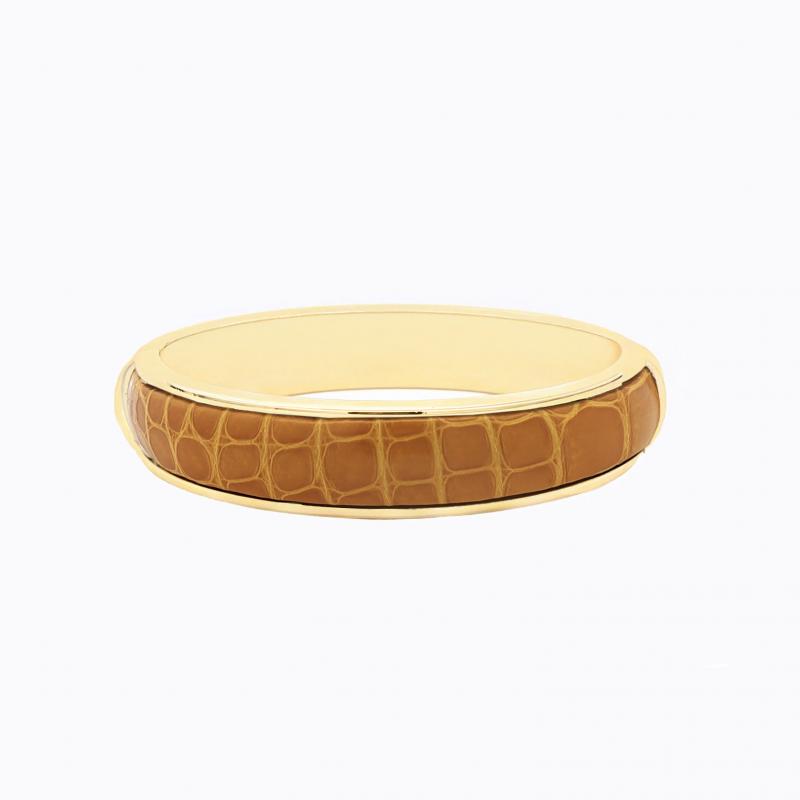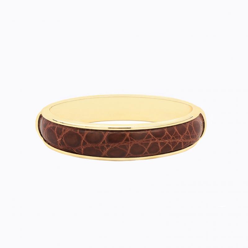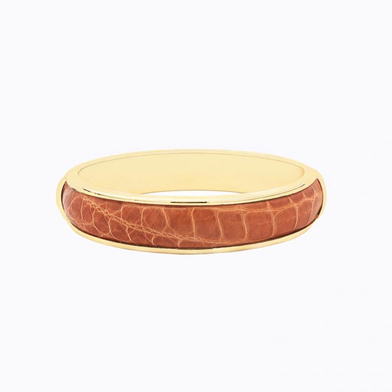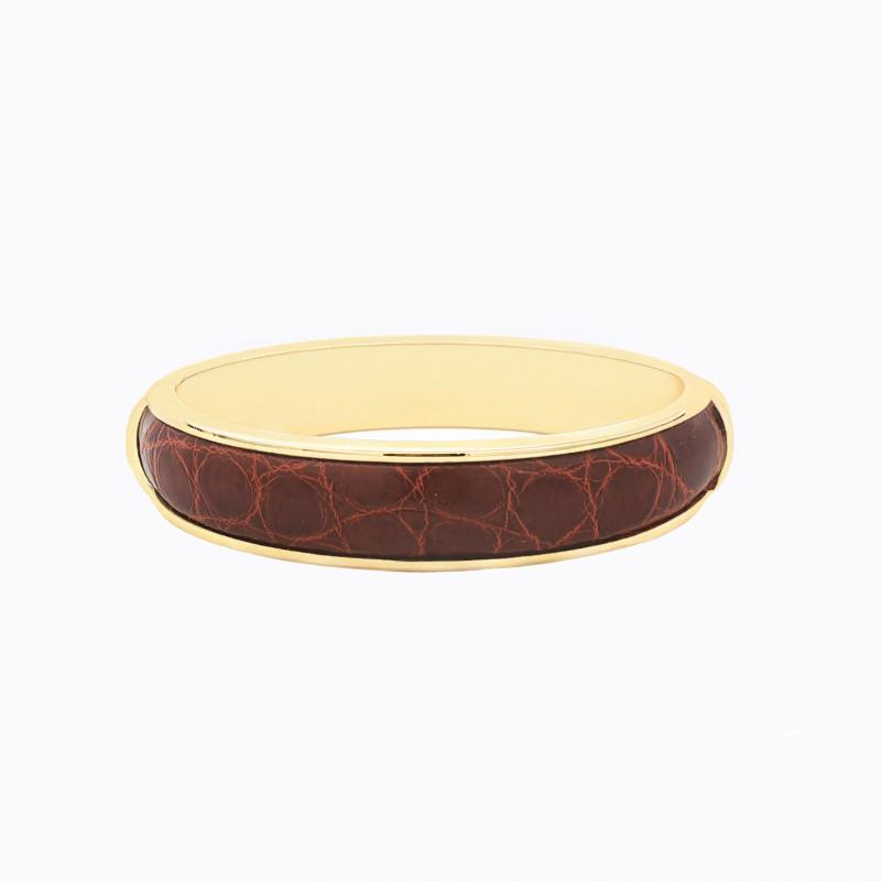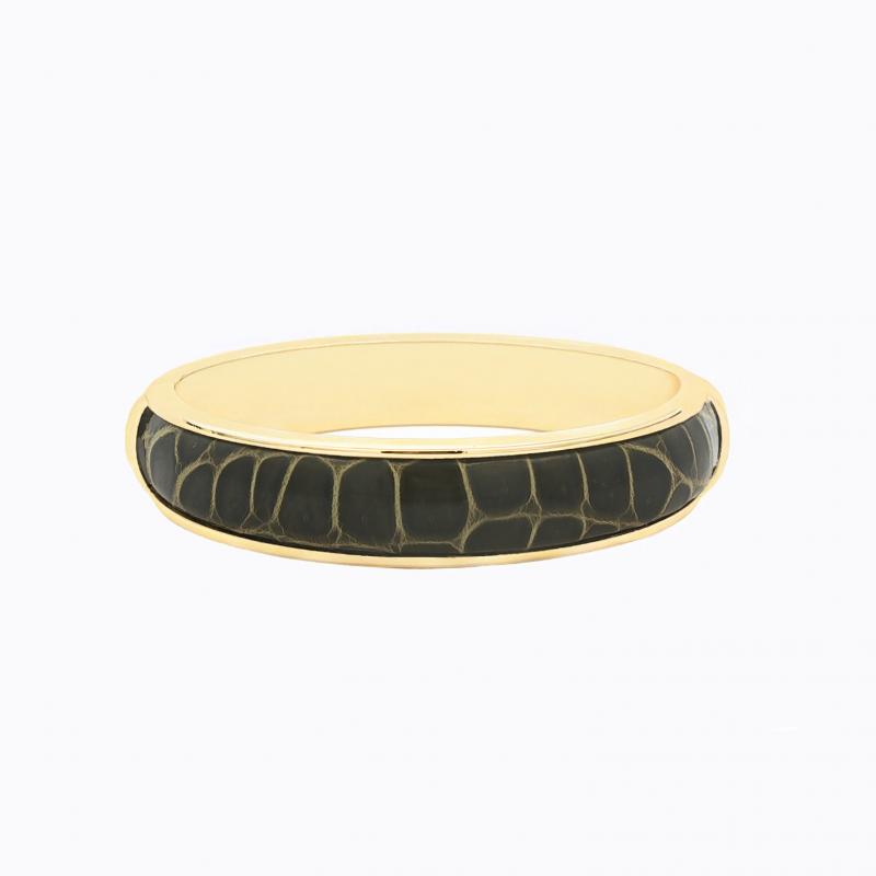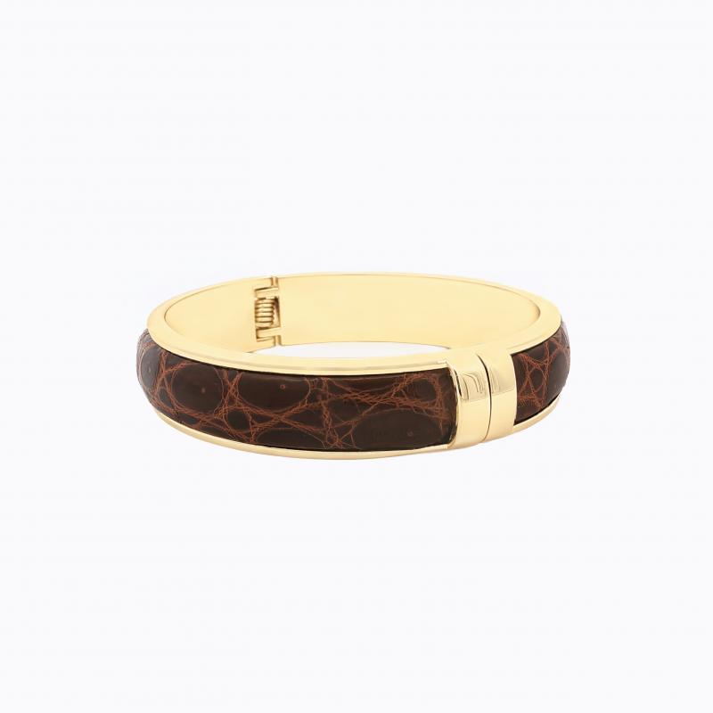 FERI MOSHCrocodylus Niloticus Bracelet - This bangle features a sleek brass construction with a polished gold finish that adds a touch of elegance. - The exterior is adorned with a textured pattern Crocodylus Niloticus skin, providing both visual interest and a lux...