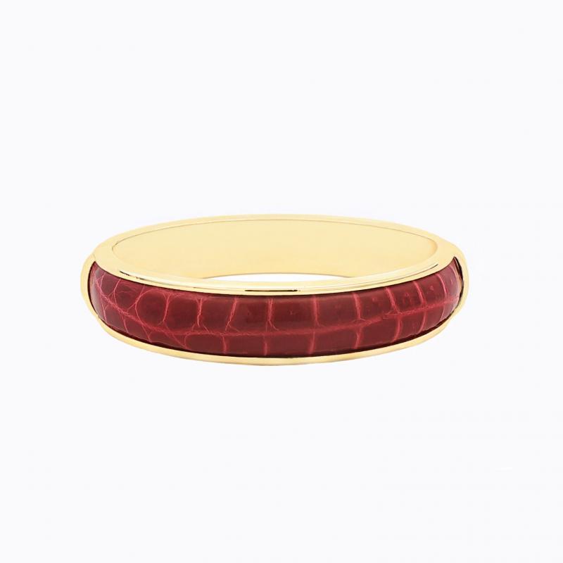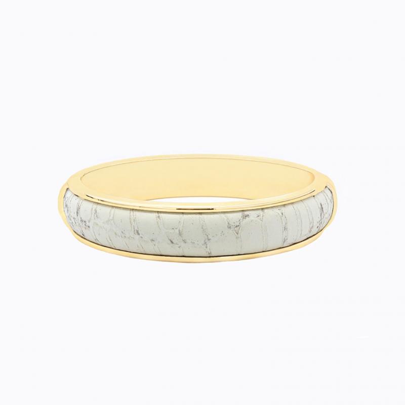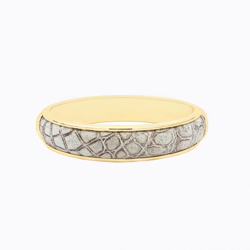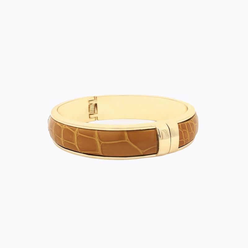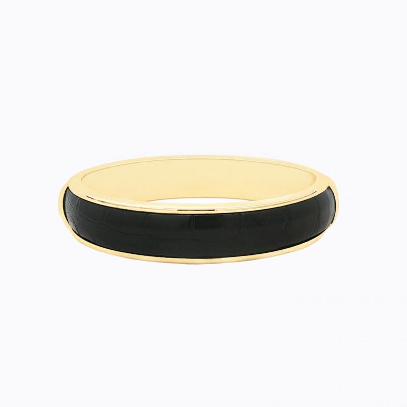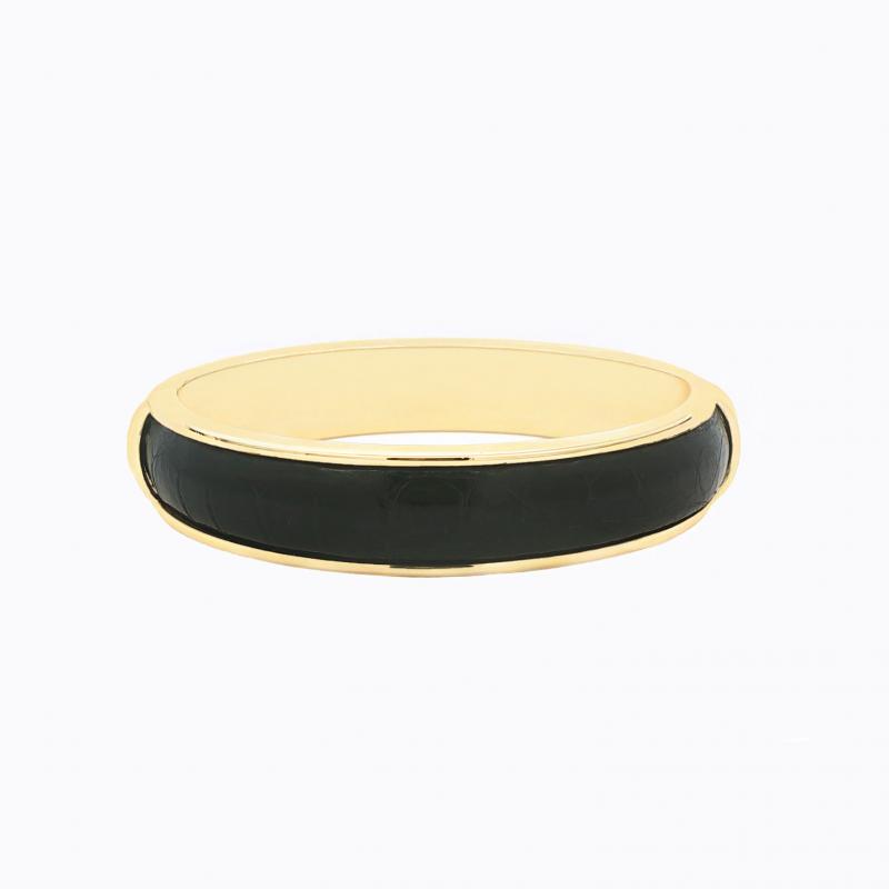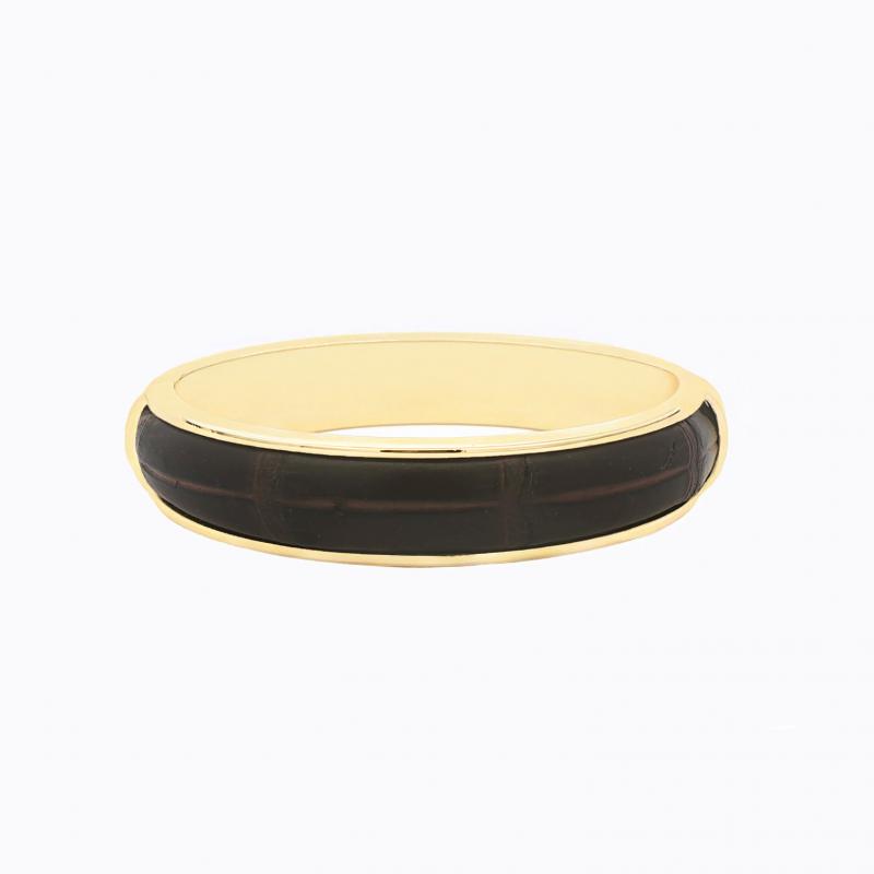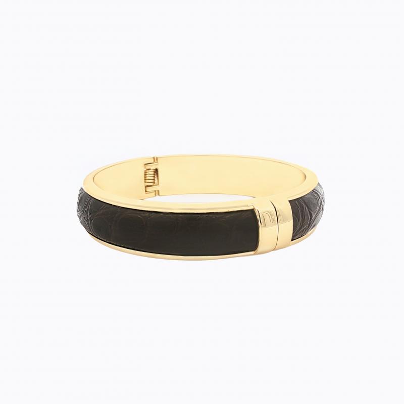 FERI MOSHCrocodylus Niloticus Bracelet - This bangle features a sleek brass construction with a polished gold finish that adds a touch of elegance. - The exterior is adorned with a textured pattern Crocodylus Niloticus skin, providing both visual interest and a lux...