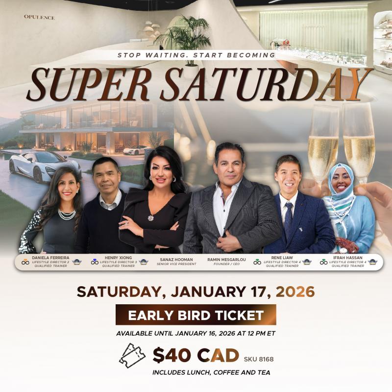 Super Saturday Join us for an inspiring start to your year & for a chance to be recognized on stage!! Ignite your dreams, reconnect with your motivation, And build unstoppable momentum for a successful 2026! Dream It. Define It. Go After It. Saturday, J...